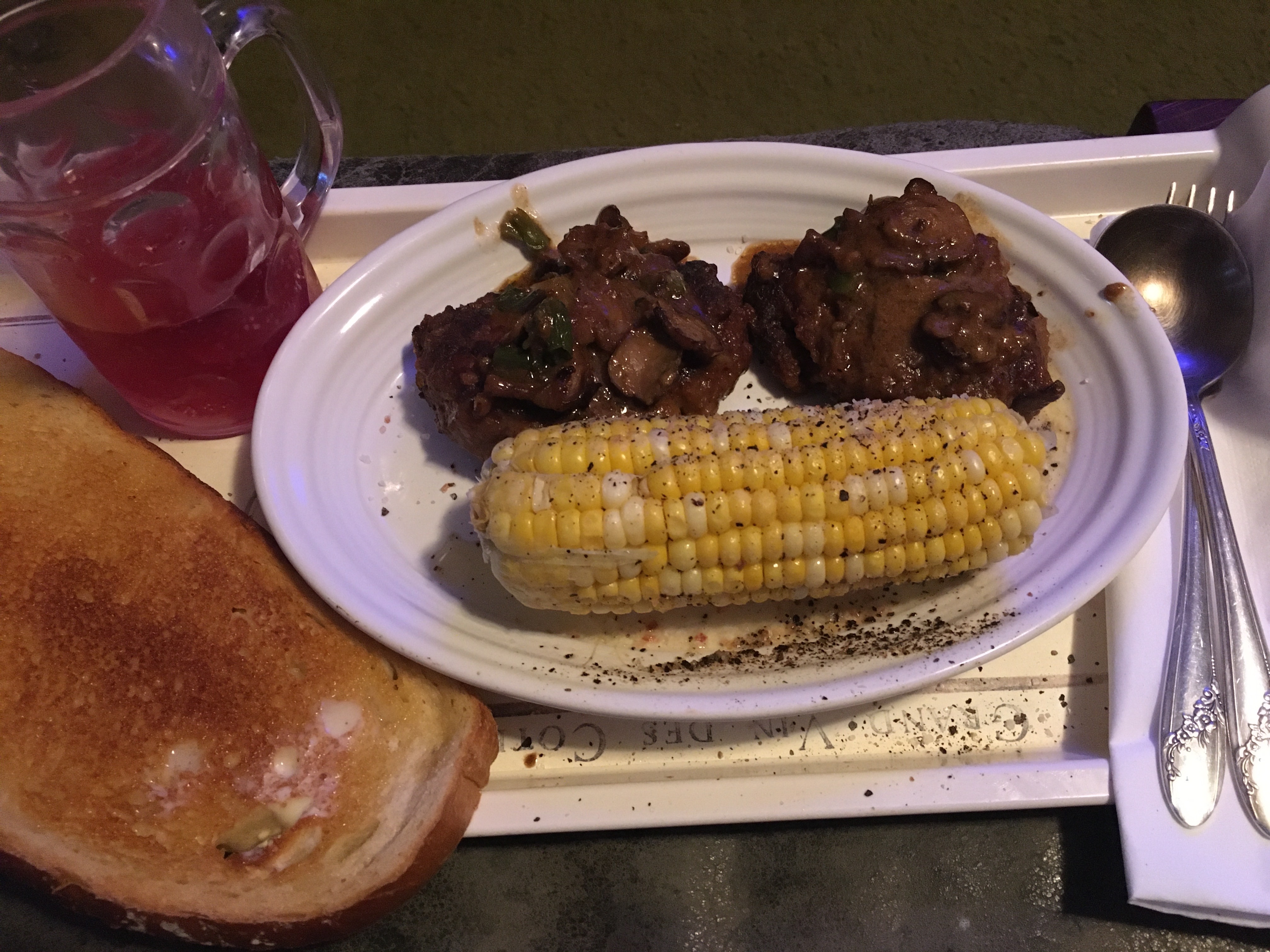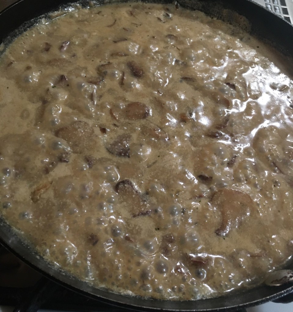 My Salisbury Steak. I followed Eric Kim’s recipe from The New York Times with two exceptions: I’m into Impossible brand “Beef Made From Plants” as an excellent substitute for ground meat. And in lieu of eight ounces of fresh cremini mushrooms, I had a six-ounce jar of Green Giant’s Sliced Mushrooms.