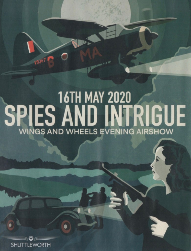 The Westland “Lizzie.” My favorite is her poster for “Spies and Intrigue: Wings and Wheels Evening Airshow” at the Shuttleworth Collection.