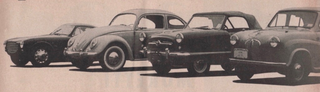 This completes our look at three of the four cars tested in that R&T issue. (Yesterday, the Moretti; the day before, the Nash Metropolitan; and see here at SimanaitisSays for an earlier evaluation of the VW.