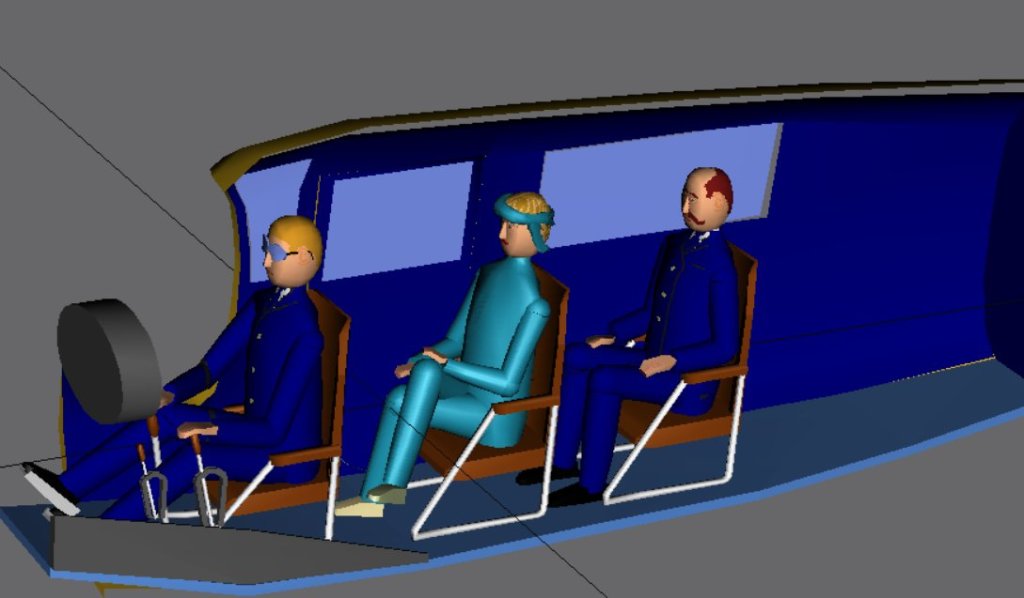 What About Seating? I typically leave interiors until later stages of the modeling, and it was easy to locate the pilot’s central seating. However, the two passenger seats were a puzzle: Golden Bear doors were asymmetric, the starboard er… righthand door seemingly for pilot and passenger access, the lefthand one also providing access for the “large luggage compartment aft of the passenger cabin.”