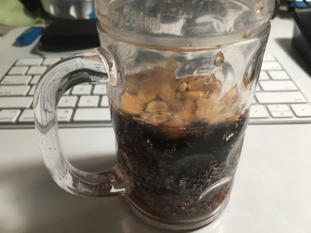 My Peanut Coke. I experimented with Diet Coke in my favorite plastic mug with Vons’ signature brand Roasted & Salted Party Peanuts.
