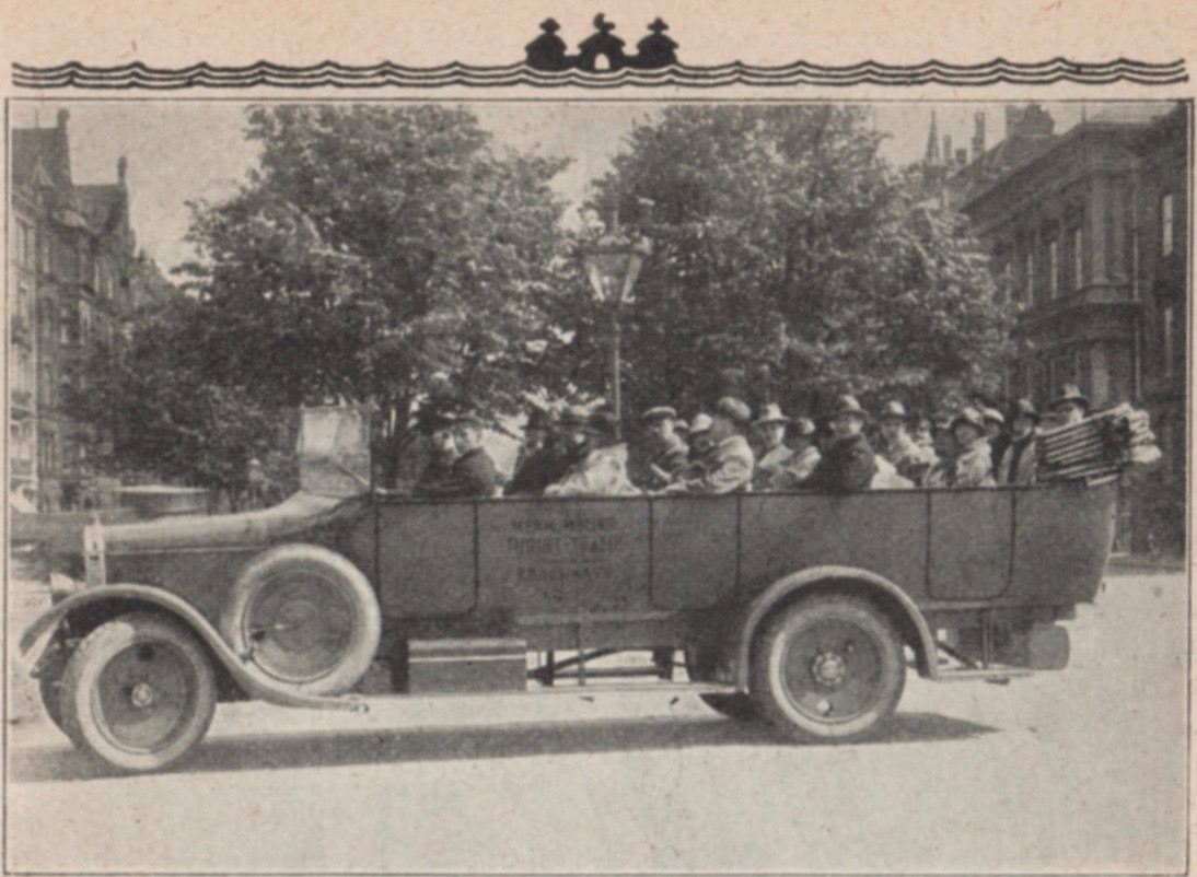 Tourists-Automobiles. Hiort noted, “With the big yellow modern Tourists-Automobiles of the firm of Herman Møller are arranged daily trips in Copenhagen and environs. The automobiles leave the Town-Hall Square at 10 and 12 o’cl.”