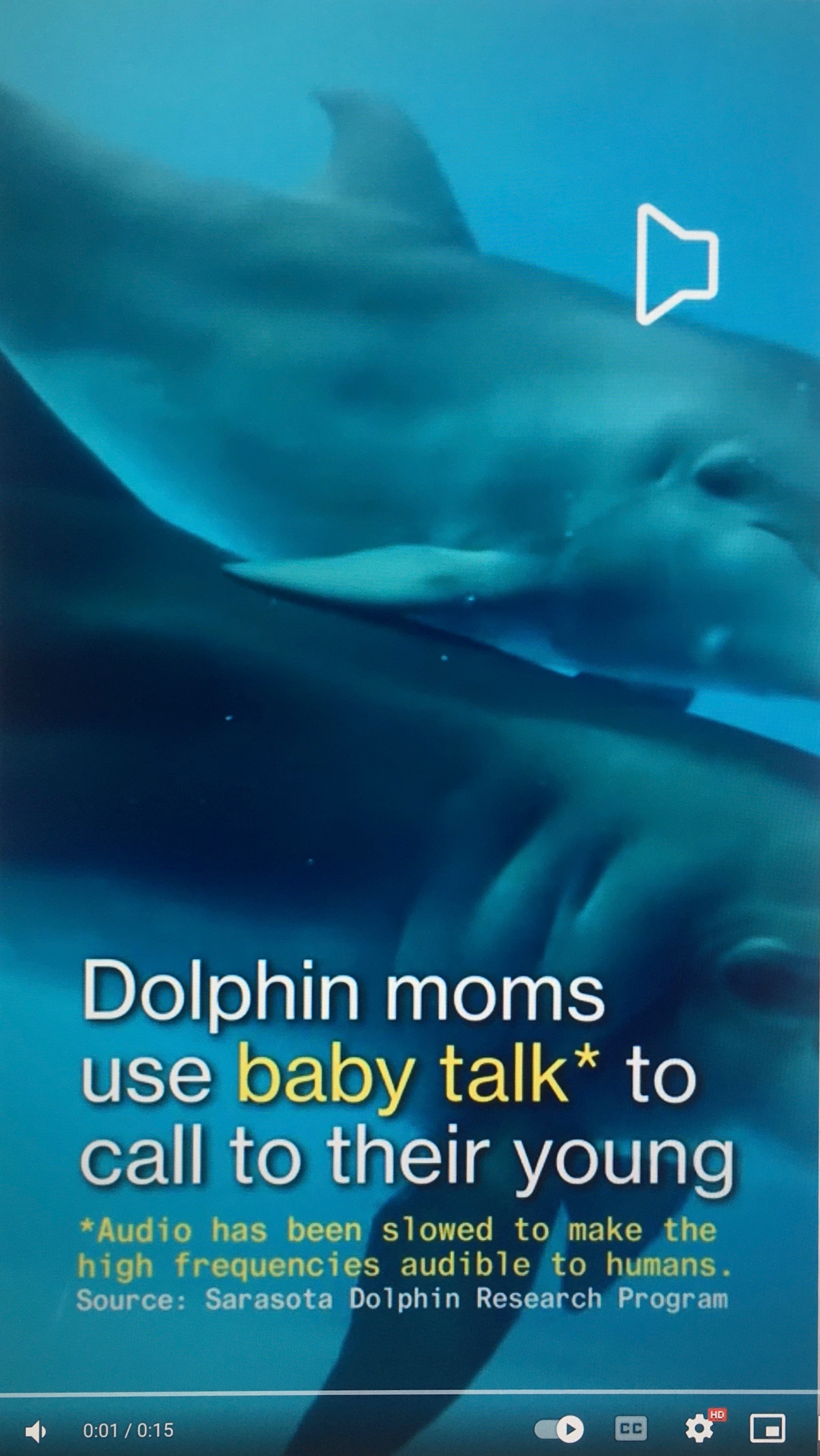 Why Both Humans and Dolphins? Hooper notes, “Child-directed communication hasn’t been observed in many animals. This poses the question of why it happens in both humans and dolphins. The researchers suggest that it is because of specific similarities between us. Both humans and dolphins have long periods of development where we (1) are dependent on our caregivers for a long period of time, (2) live in complicated social environments and (3) must learn complex vocalisations from our caregivers in order to navigate these environments. That evolution may have sculpted the same behaviours between us both is perhaps not so surprising given these similarities.”