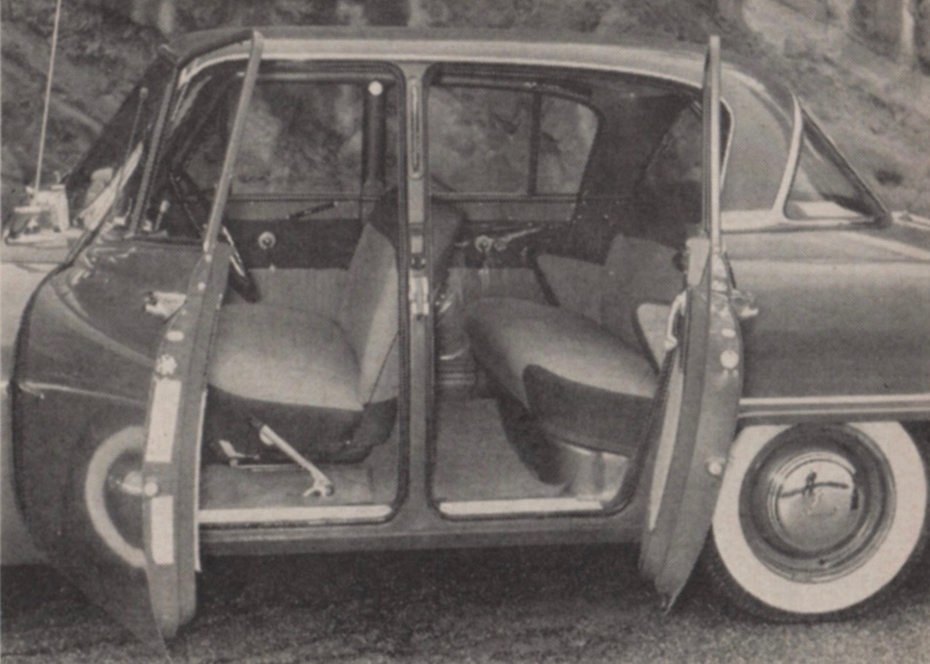 A Modest Options List. R&T wrote, “As for optional extras there are a few fundamental ones, but no frills like automatic transmissions, power windows, or air-conditioning. The list of available extras includes radio, heater, electric clock, rear-window blind, fog and back-up lights.”