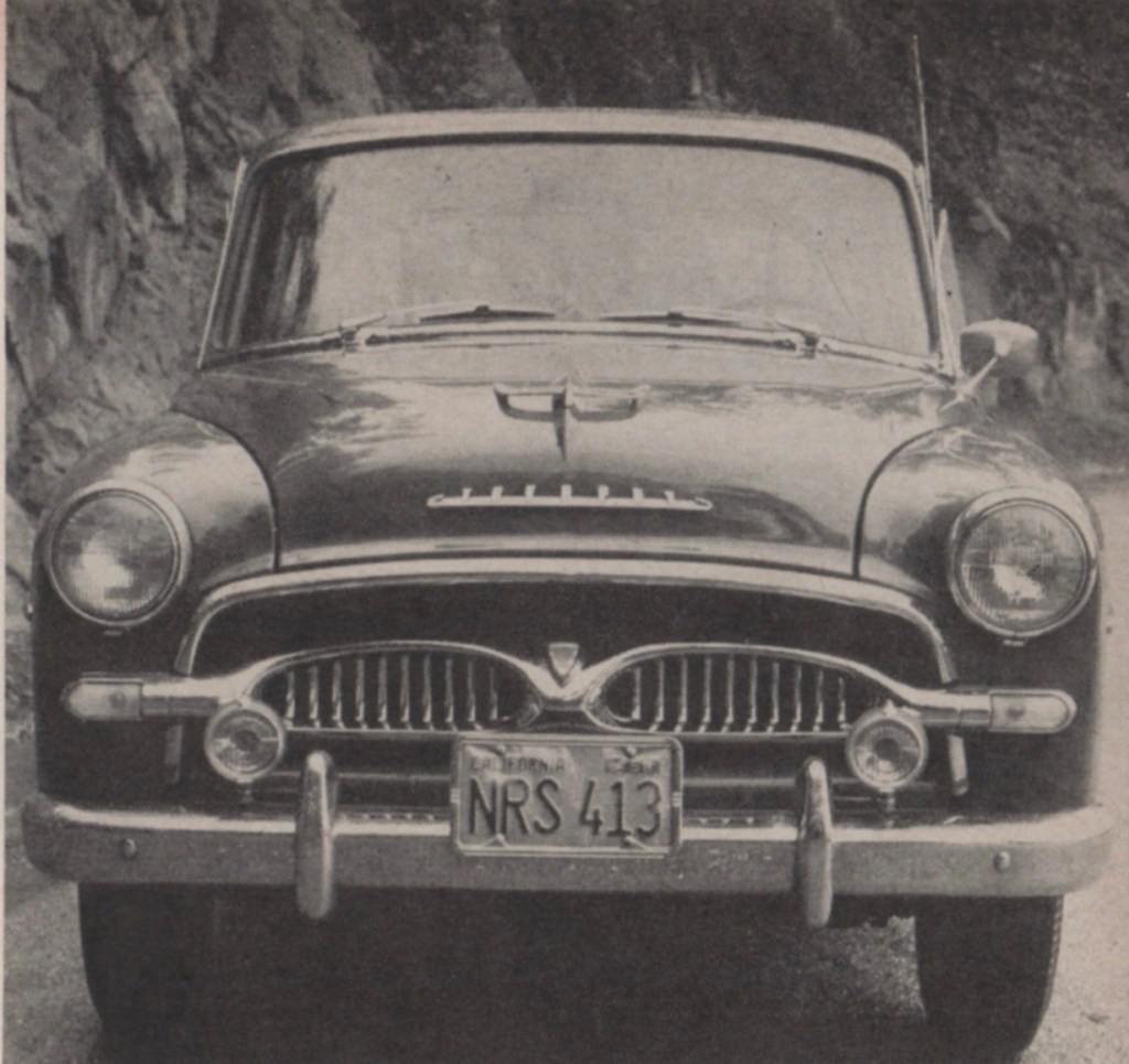 This and other images from R&T, March 1958. It reported, “The Toyopet’s overall look of solidity would be helped by removing the antlers from the grille.”