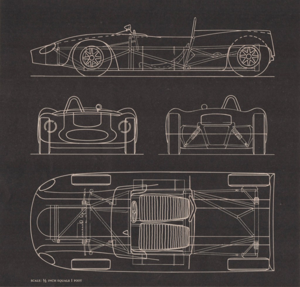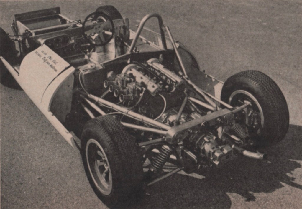 Chassis Design. R&T noted that the Bobsy “follows quite closely the established lines for rear-engined competition sports cars. However, it is distinguished by the extensive use of aluminum in frame and suspension components. In fact, when the car made its first appearance on the West Coast, the aluminum roll bar was queried by the technical inspectors, but notarized specifications for the tubing used dispelled any doubts.”