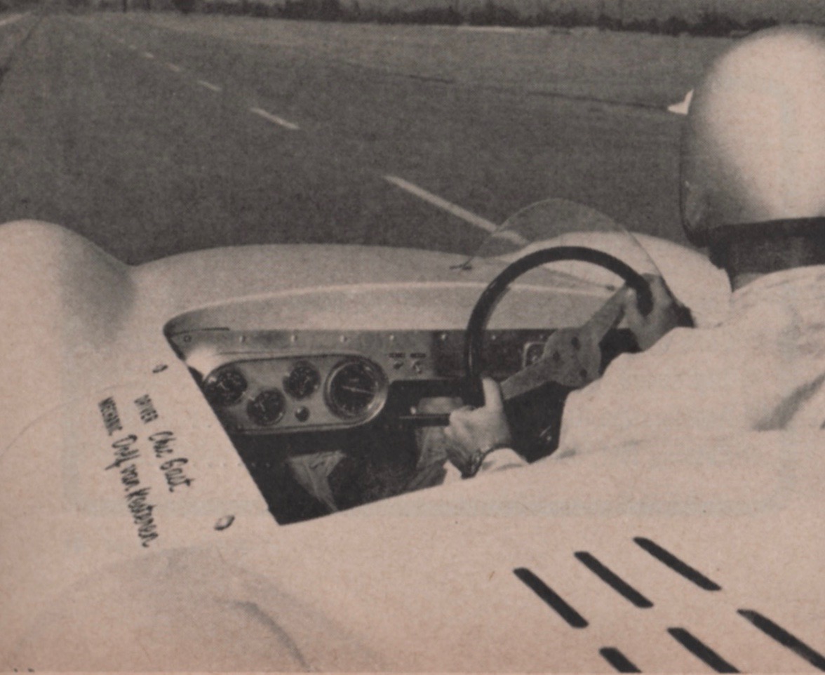 Track Testing the Bobsy Osca. R&T recounted, “On the track, the car is entirely different from the original Osca [whence its 850-cc powerplant]. Whereas the Osca had a heavy feel so characteristic of Italian competition cars, the Bobsy is exactly the opposite and follows the Lotus/Cooper tradition. The steering is finger-light at speed, and the car will hold its line through a turn without any wheel sawing or other effort on the driver’s part.”