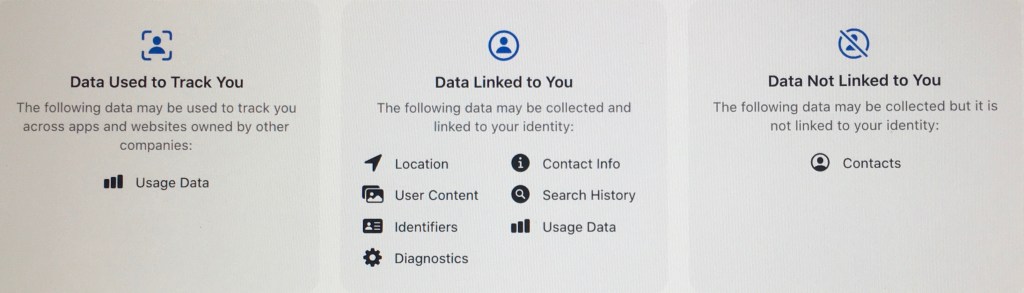 As a more elaborate example, Apple Upside is a specific app offering a similar deal on gas and food. The monetization of such apps lurks in the fine print: “The developer, Upside Services Inc, indicated that the app’s privacy practices may include handling of data as described below. For more information, see the developer’s privacy policy. Privacy practices may vary, for example, based on the features you use or your age. Learn More.”