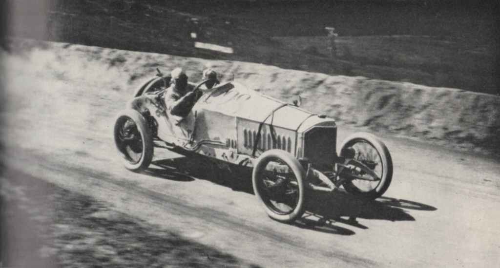 “The choice of gear ratios,” Pomeroy continued, “was indeed a severe headache for the designer. The 23.3-mile Lyons circuit was popularly supposed to have 100 corners: it certainly embraced a difference of 700 ft. between the lowest and highest point, and one leg consisted of an eleven-mile switchback straight.”