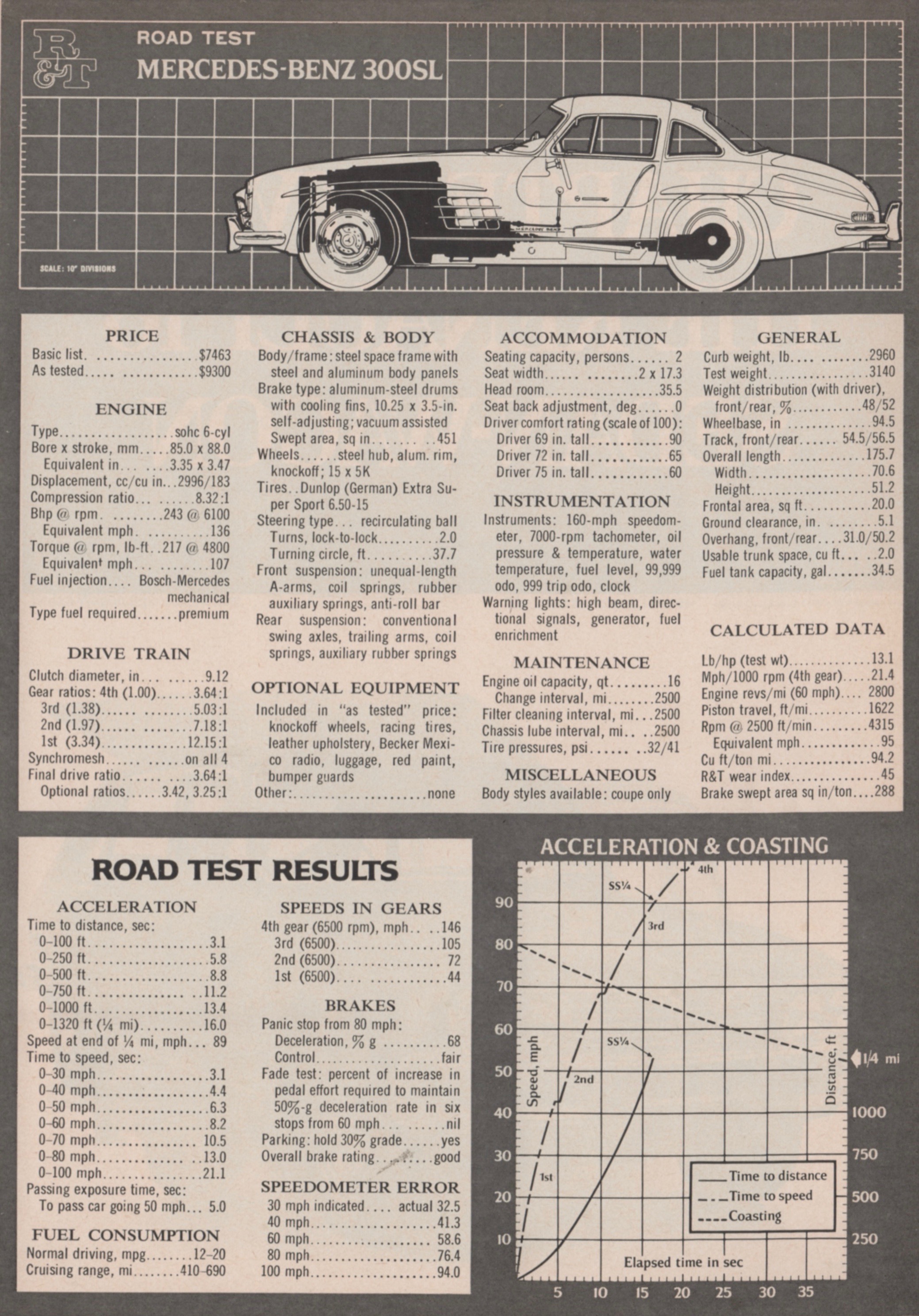 R&T’s Classic Test in 1968. “In the past,” R&T said in October 1968, “we have simulated road tests of great cars from the past by synthesizing data from tests done in their day. This test, however, is not a synthesis of earlier data (we road tested a 300SL coupe for our April 1955 issue) but rather a full road test conducted right now.”