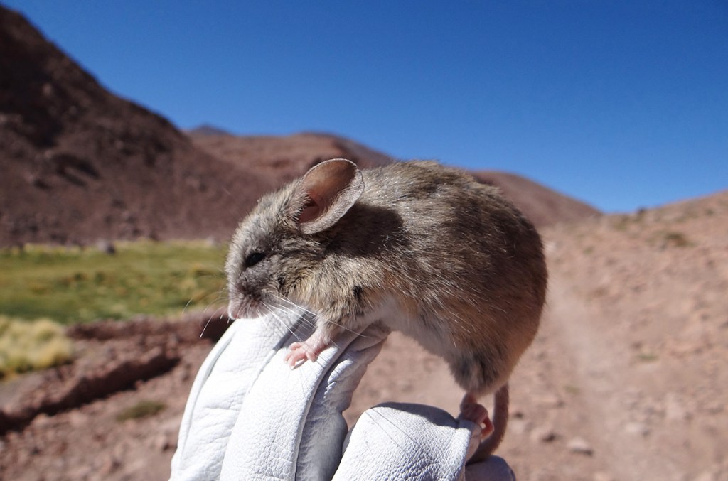 Andean leaf-eared mice, Phyllotis vaccarum, can be found living above 22,000 feet. Image by Marcial Quiroga-Carmona/Jay Storz from Science.