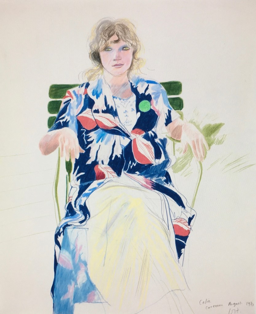 “Although often dubbed Hockney’s ‘muse’, their relationship is much more than that. They have always admired each other’s work and her sittings for him have been collaborations, as well as an opportunity to enjoy each other’s company. In his portraits of Celia, the artist has always paid close attention to her distinctive and romantic fabric designs and some of Celia’s own work is inspired by the artist.”