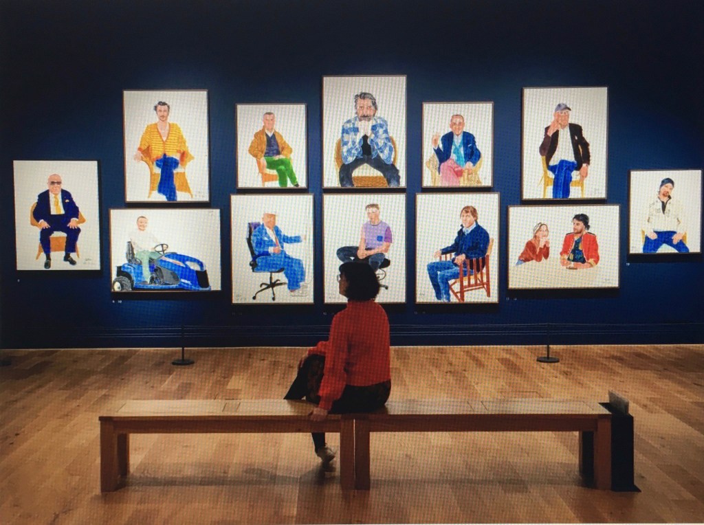 “In 2021, as Hockney emerged from the quarantine imposed on him by Covid, he began to invite people into his studio again. After a year spent recording the landscape around his home using an iPad, Hockney returned to painting portraits, taking delight in holding brushes again.”