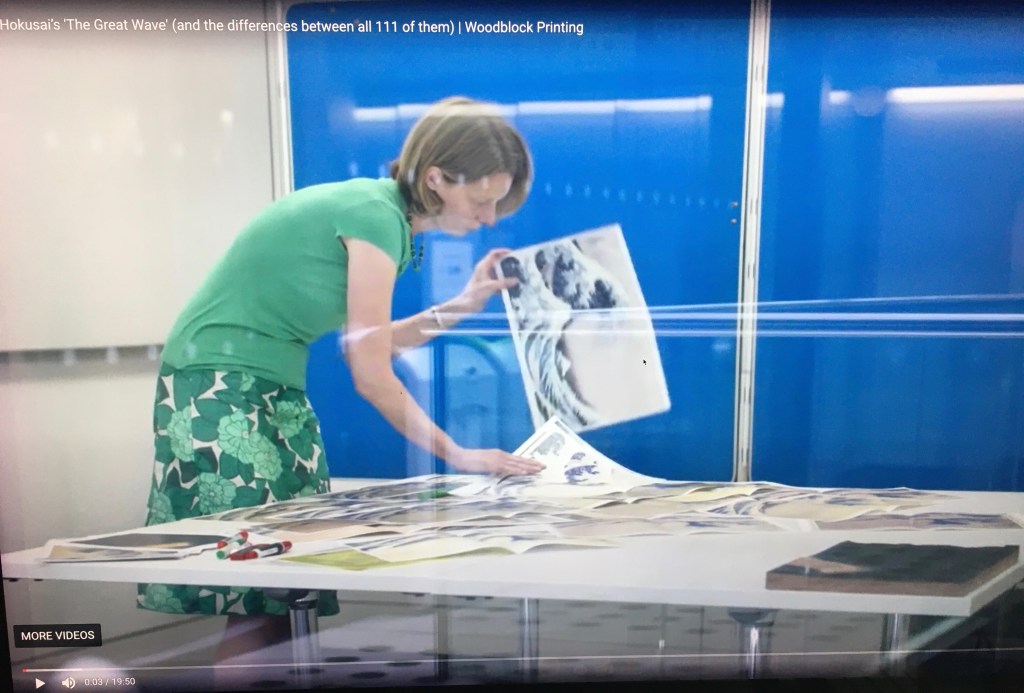 Capucine Korenberg analyzes several Great Wave woodblock sets of 113 extant. Image from YouTube.