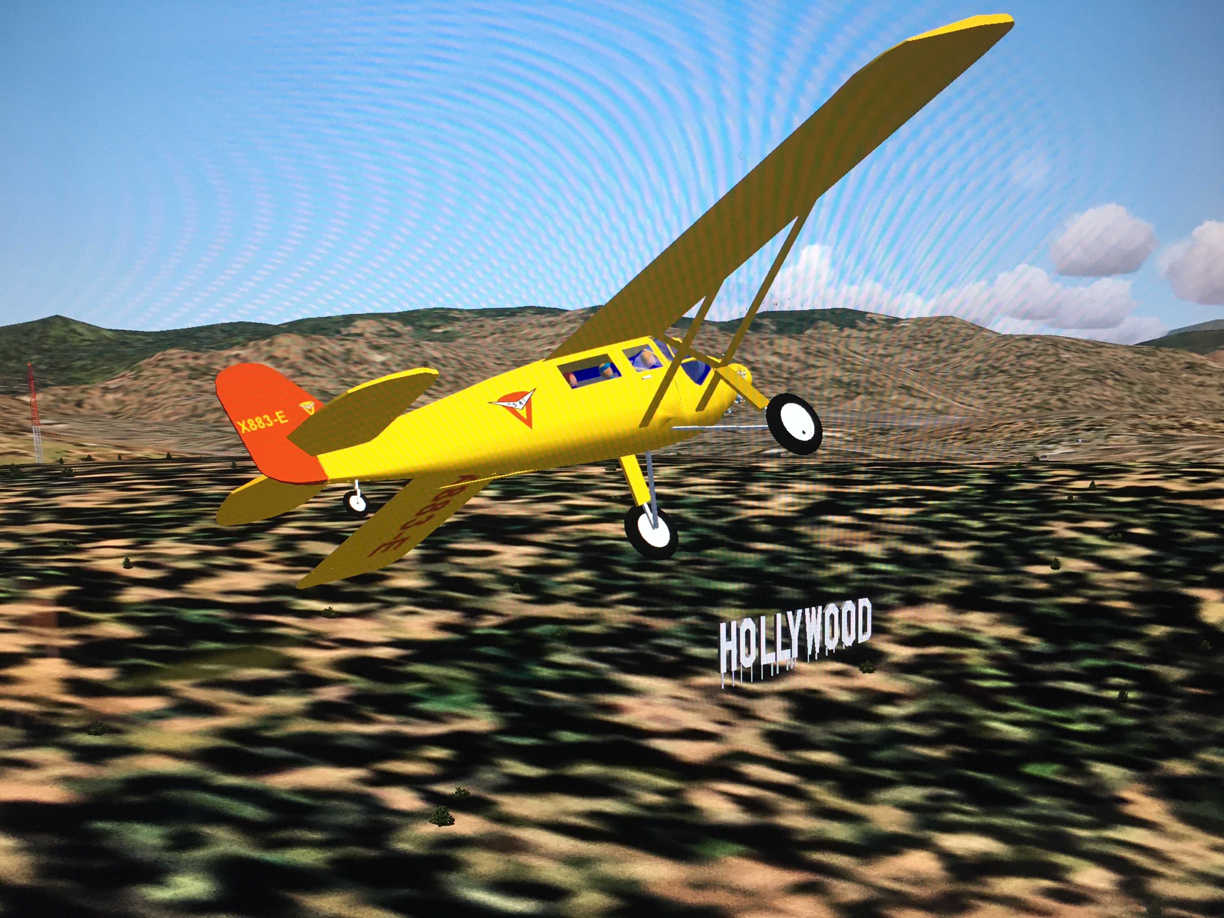 Viewing HOLLYWOOD. My favorite view of the sign is on Microsoft’s Computer Flight Simulator.