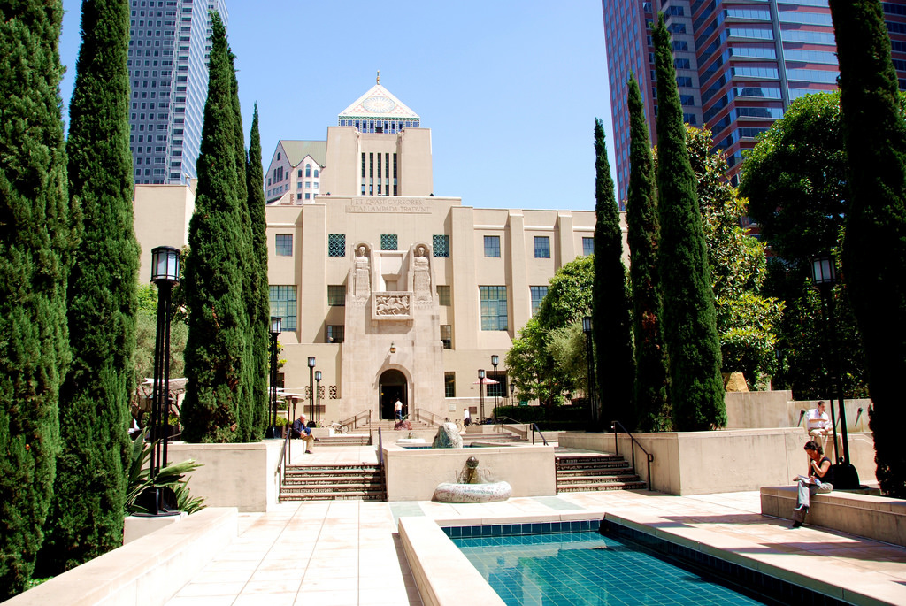 Los Angeles Central Public Library. “The Central Library’s Bertram Goodhue-designed building,” Barragan recounted, “opened in 1926. The exterior is decorated with limestone sculptures and incorporates a wide range of influences from Byzantine to Egyptian. Atop the building, a tiled pyramid is capped with a torch, ‘symbolizing the light of knowledge,’ according to the LA Conservancy.”
