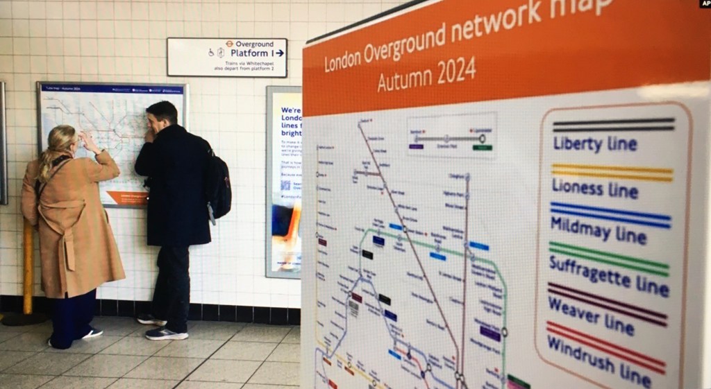 Windrush. This line, VoA recounts, “commemorates the ship that landed near London in 1948, carrying more than 800 passengers from the Caribbean to new lives in Britain. A number of the stations on the line have historic Black communities, such as Peckham Rye and West Croydon. It will be shown as double red lines on the map.”