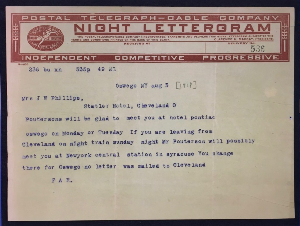 A cable from Warren G. Harding to his mistress Carrie Phillips.