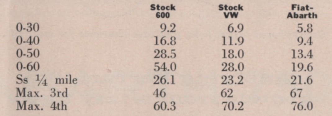 It sure tells me one thing: The standard Fiat 600 would have been no fun. Even the earlier-cited tiny Berkeley’s top speed of 58 mph came with relative promptness in getting there. And I’d suspect the BMW-Isetta’s rolling-egg 0-50 in 52 seconds would have had its idiocentric charm. And, of course, there’s that Beetle-baiting.