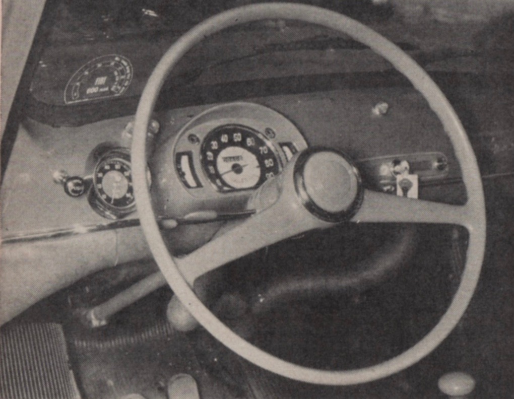 Sports Car Feel. “What the figures do not tell,” R&T said, “is the fun qualities of the Italian car; this is a small sedan with a genuine sports car feel. What are the drawbacks, the shortcomings, resultant from such a drastic modification? Only one, and that not objectionable to everyone; namely the exhaust note. While not noticeable inside the car, the Abarth exhaust system has a fairly pronounced rap. We liked it.”