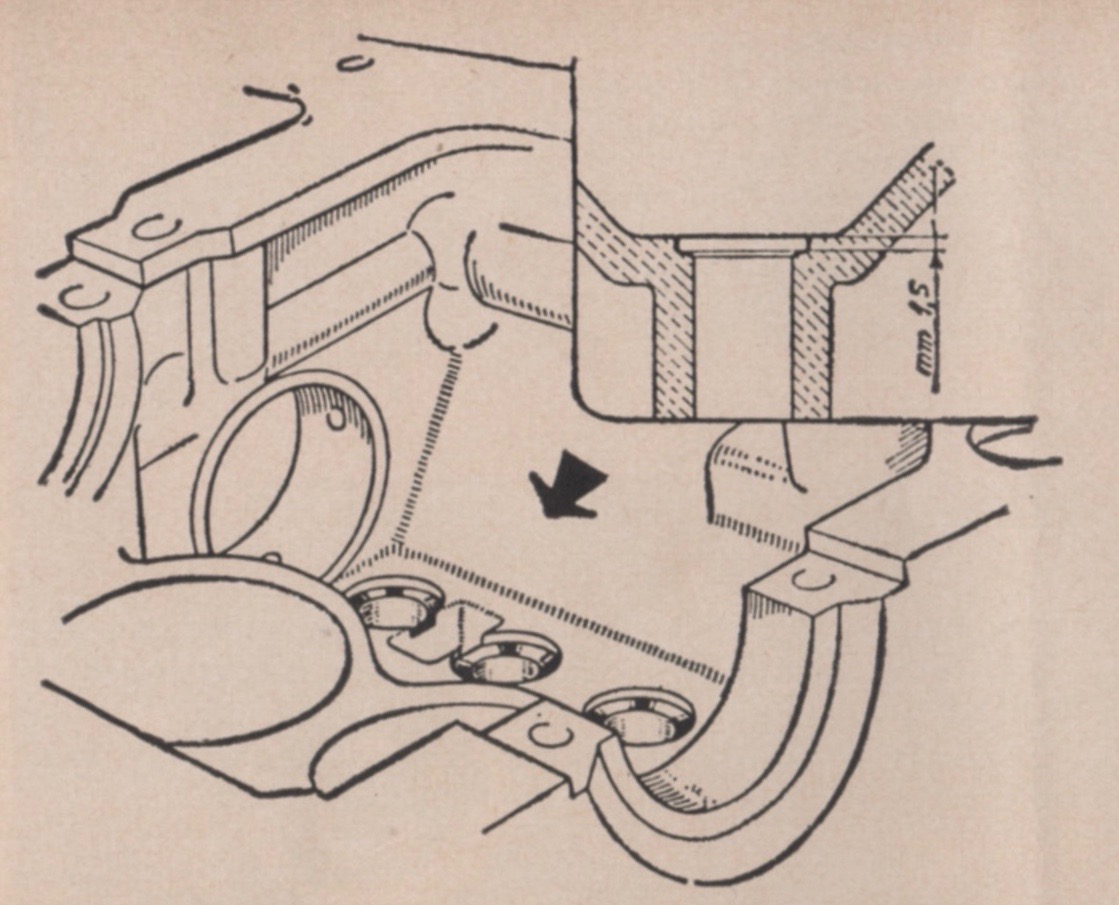 Not Your Father’s Fiat 600. “The modification process is not simple, or cheap,” R&T observed. Cylinders are bored increasing displacement to 747 cc, thus the 750 moniker. “The crankshaft is machined at the rear to clear the counterweight, and the valve tappet holes are counterbored to allow for higher valve lift (see illustration).”