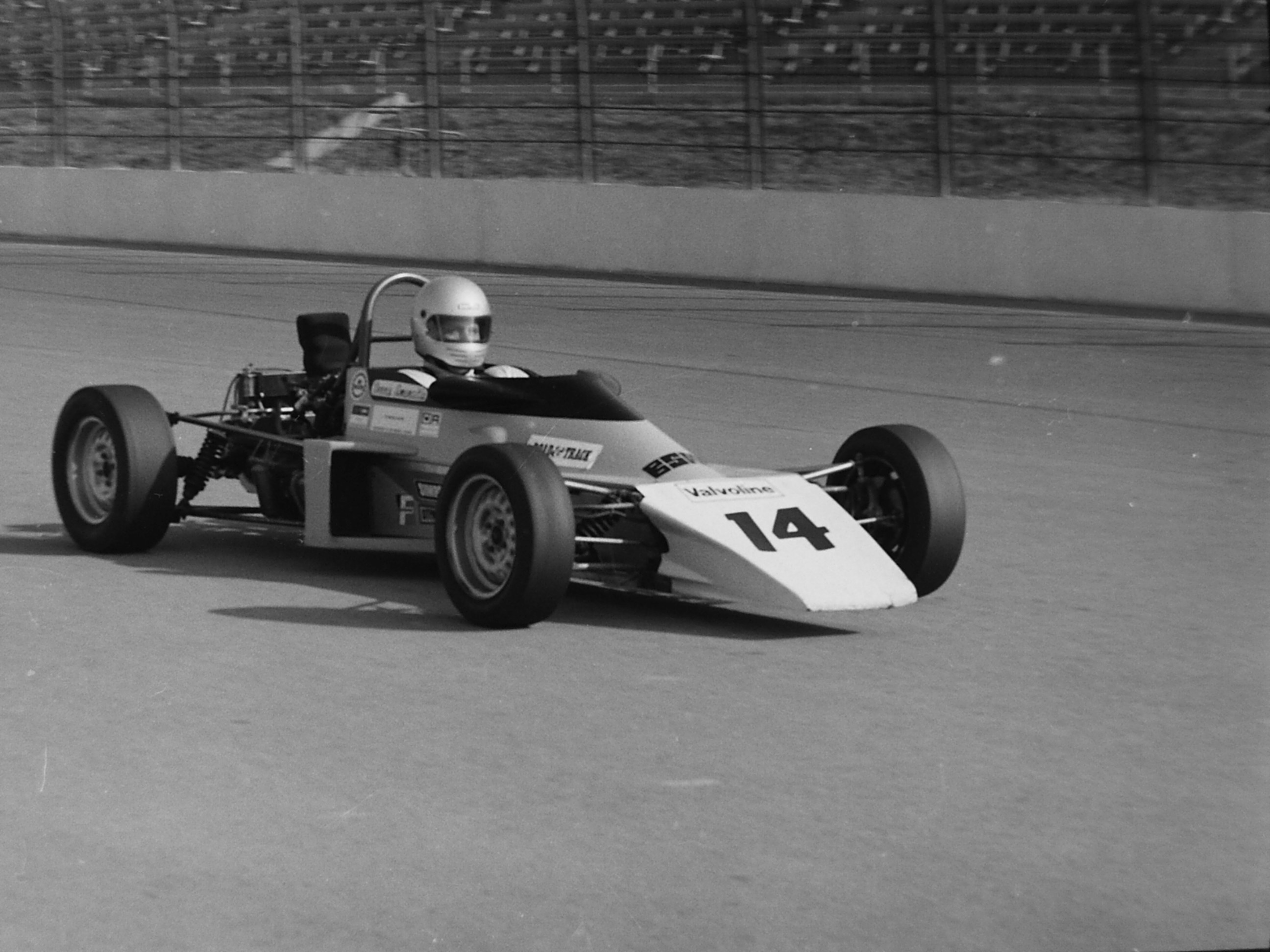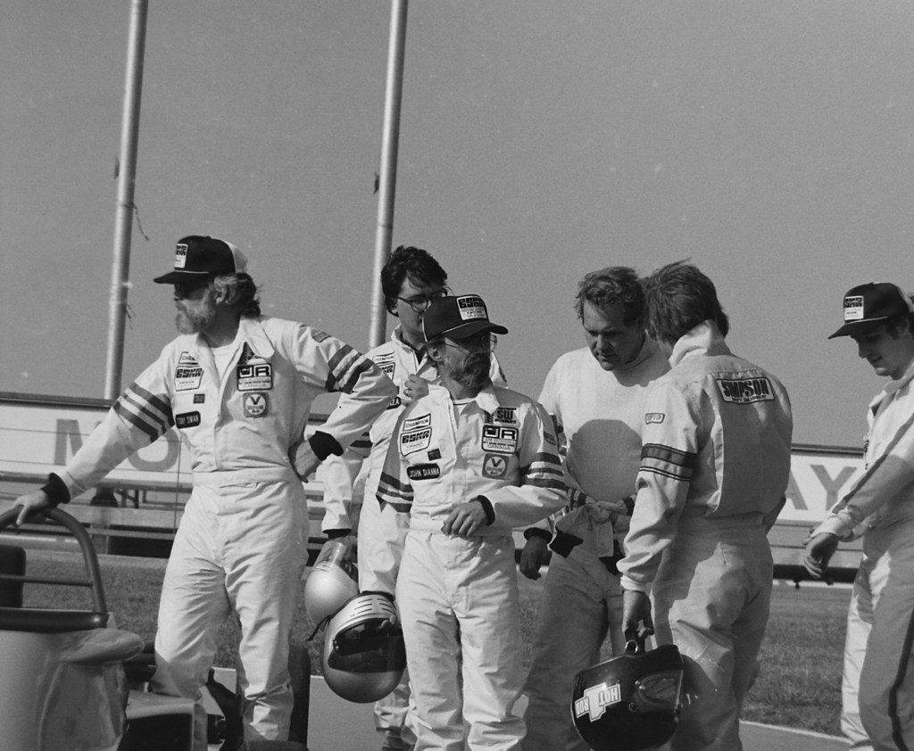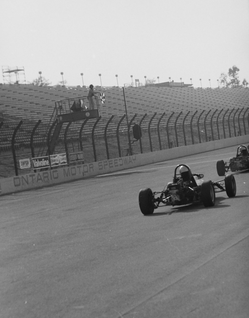 WIFE DOTTIE’S NIECE LINDA RECENTLY came upon strips of b/w negatives shot by Dottie when I drove a Formula Ford at what I believe was the last competitive event at Ontario Motor Speedway. Here, in Drive to Survive insider fashion, are her images of that momentous event (which I believe occurred sometime in the early 1980s). Alas, I recall writing about it in R&T, but research with my bound volumes and R&T Index failed to unearth it.