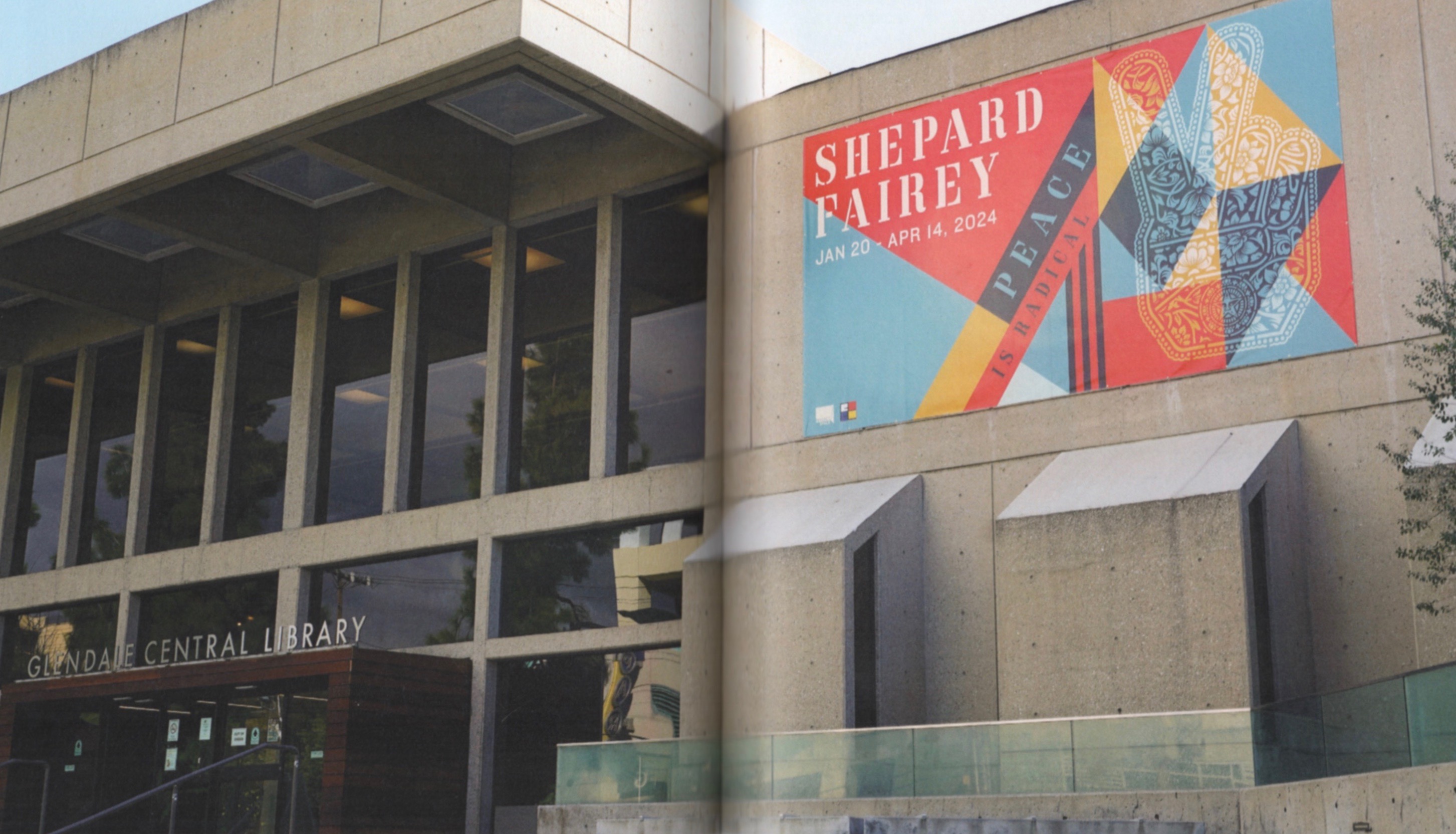 Fairey Exhibit. The Fairey exhibit was curated by Ara and Anahid Oshagan. It’s held in the Reflectivespace Gallery of the Glendale Central Library and will remain open through April 14, 2024.
