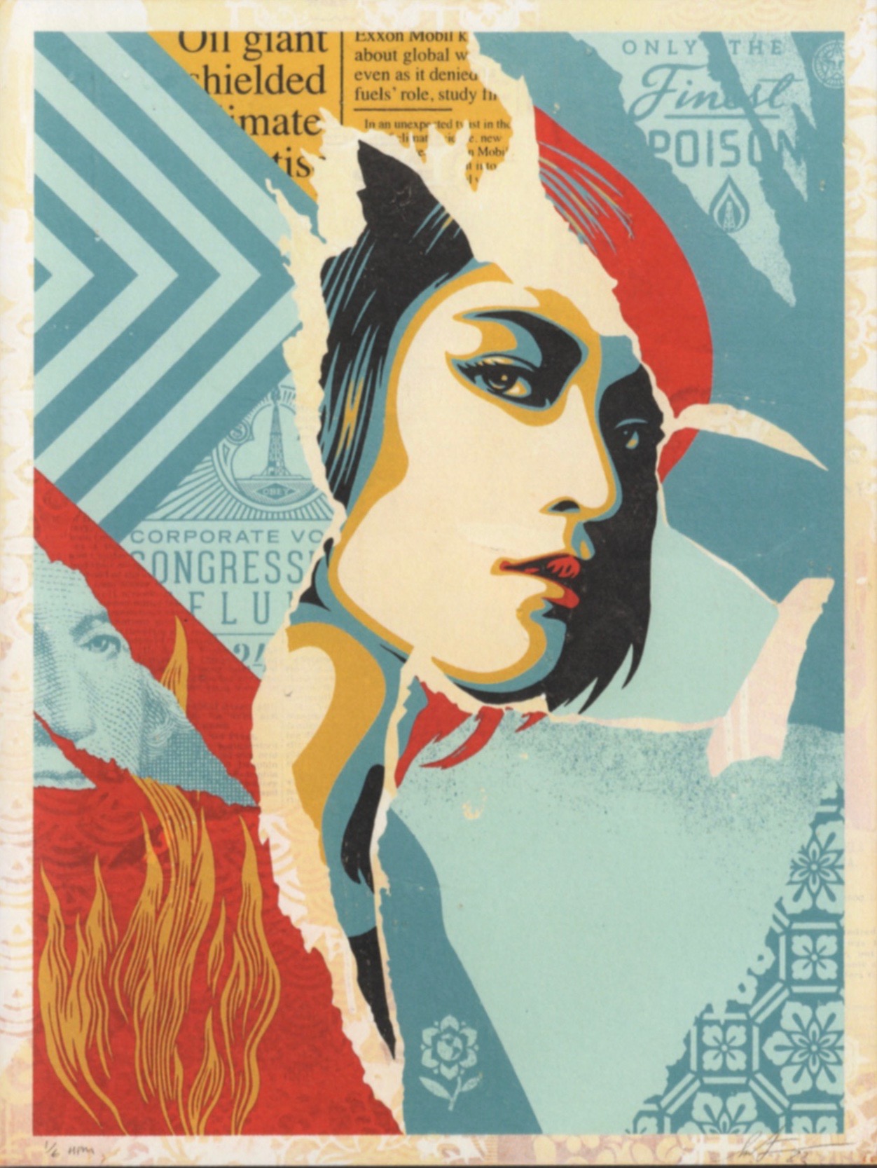 Big Oil. Fairey describes, “ ‘Only the Finest Poison’ is a critique of the many methods the oil industries use to maintain business as usual, including deceptive marketing, bribing politicians, discrediting science, and concealing the truth.”