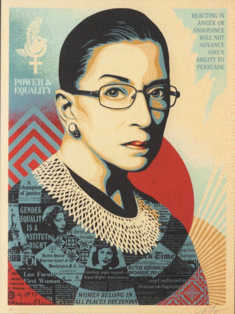 RBG. “Ruth Bader Ginsburg,” says Fairey, “is a hero of mine because she was a low-key radical.”