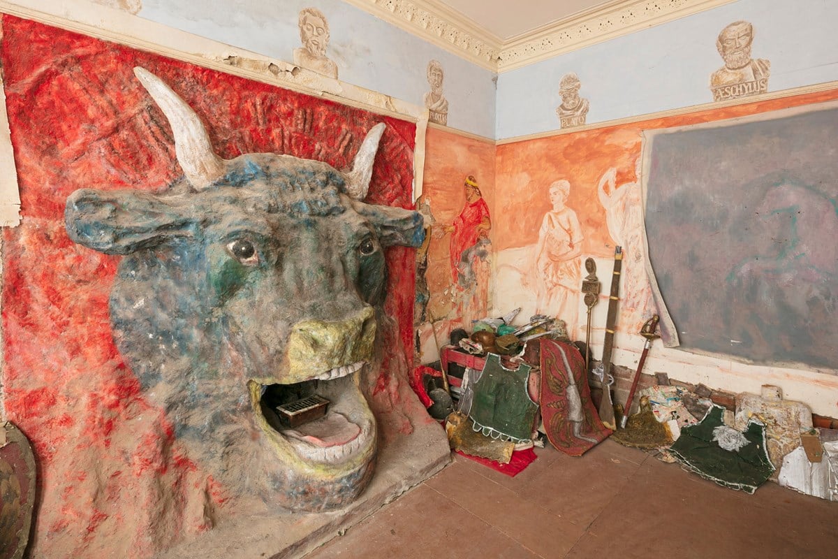Stuff of a High Order. Historic England observes, “From intricate murals depicting historical scenes to hand-crafted concrete fireplaces in the shape of a roaring lion’s head, a Minotaur’s head (a mythical creature with the body of a man and the head and tail of a bull) and even a Roman bread oven, Gittins’ creative imagination permeated every corner of his rented ground-floor flat.”
