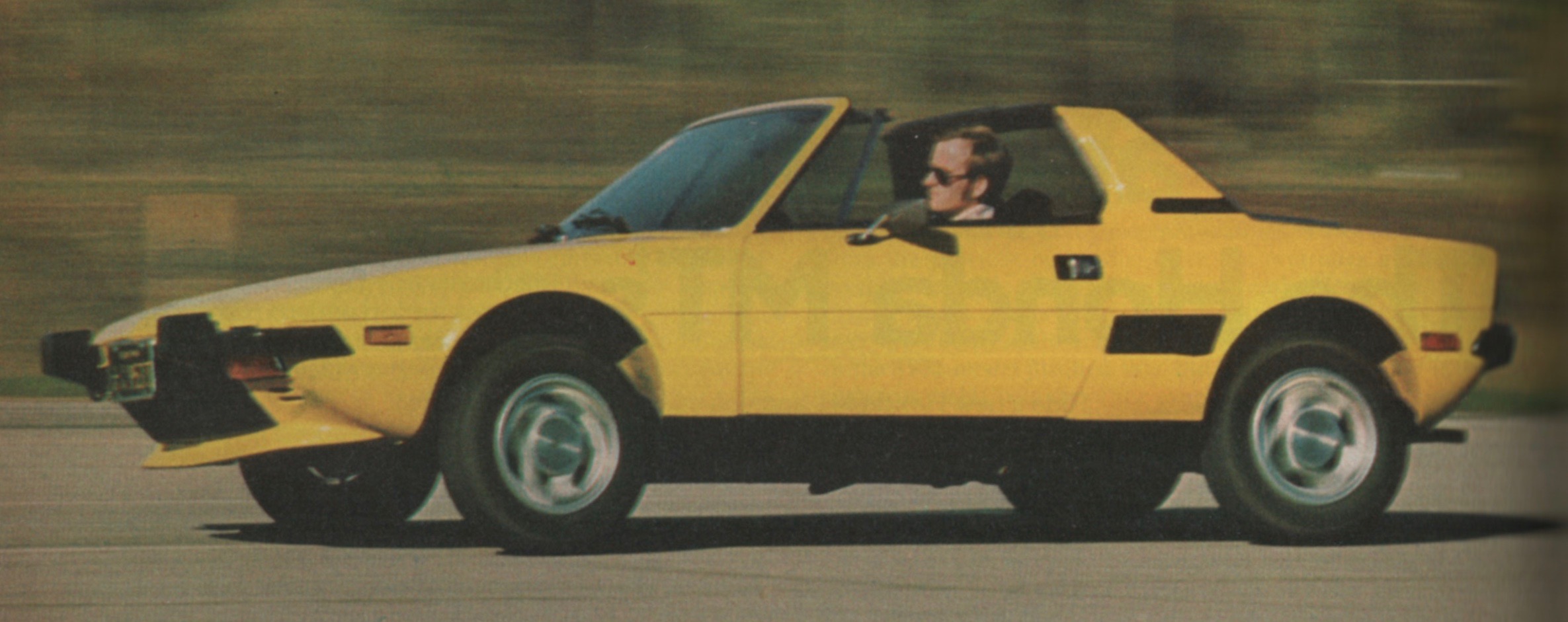 What with shelves of R&Ts dating back to the late 1940s, I have a Fiat X1/9 time machine, only this one travels forward from the car’s 1974 U.S. introduction through its final iteration in 1989. Here, in Parts 1 and 2 today and tomorrow, are tidbits gleaned from these R&Ts, from Internet sources, and from my own enjoyment of the X1/9.