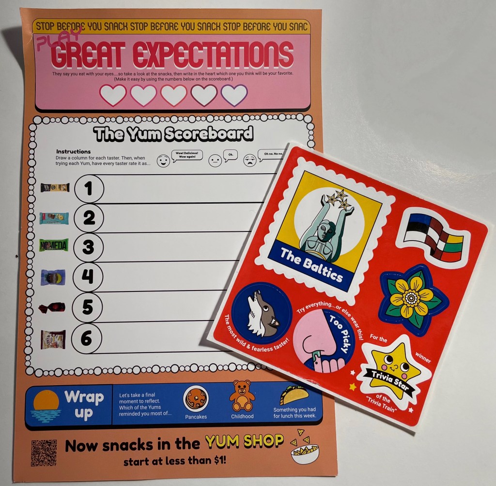 Family Ratings. It’s hard to believe anyone would object to maple bacon snacks…. But Universal Yums adds to family fun by including “Play Great Expectations,” a rating sheet for before, during, and after snack sampling.