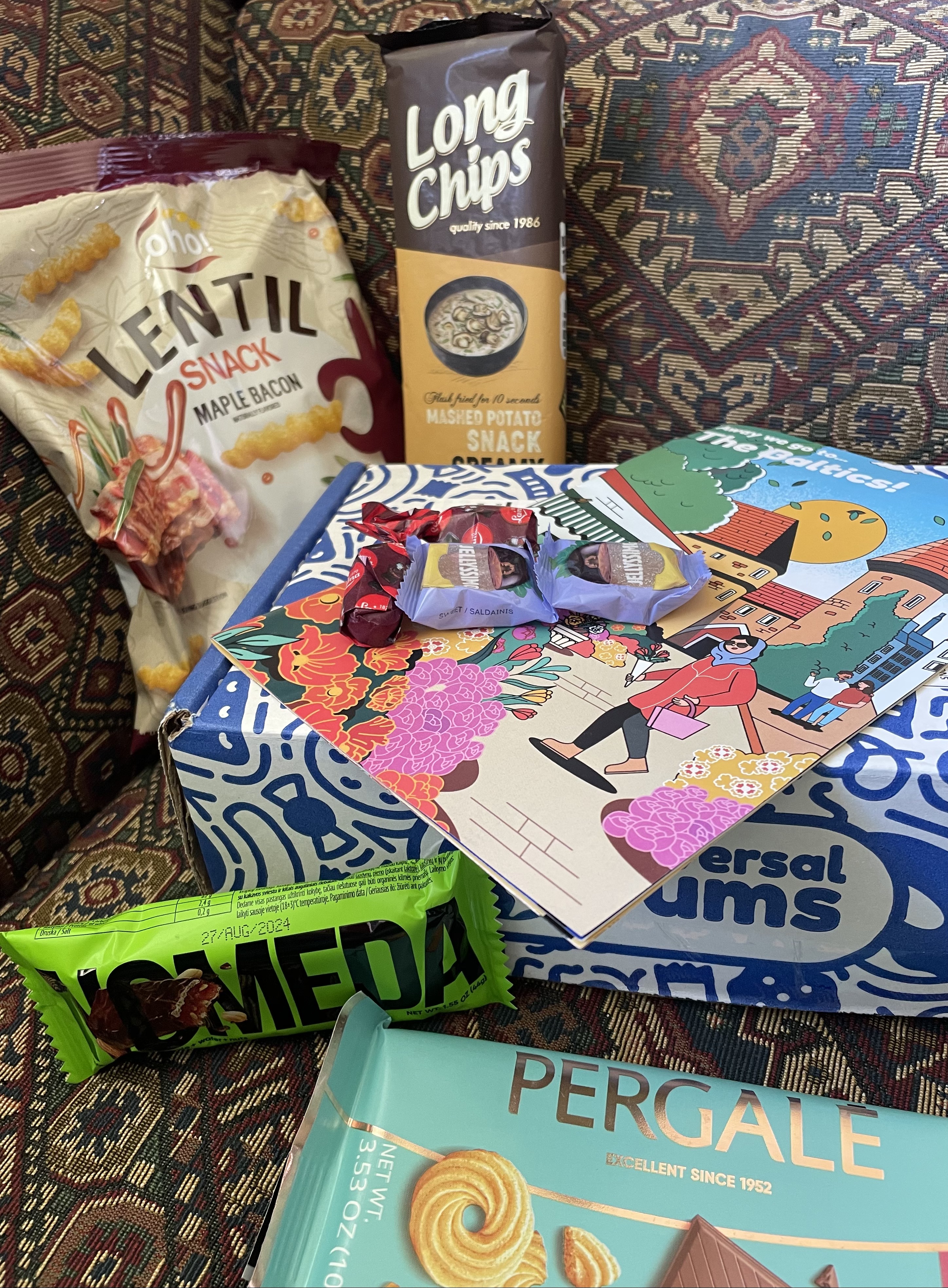 Worldly Snacks! Thus far, Daughter Suz’s snacks have originated from South Korea, Poland, Ukraine, and France. And, wouldn’t you know, the recent one is from The Baltics: Estonia, Latvia, and—ta da—Lithuania.