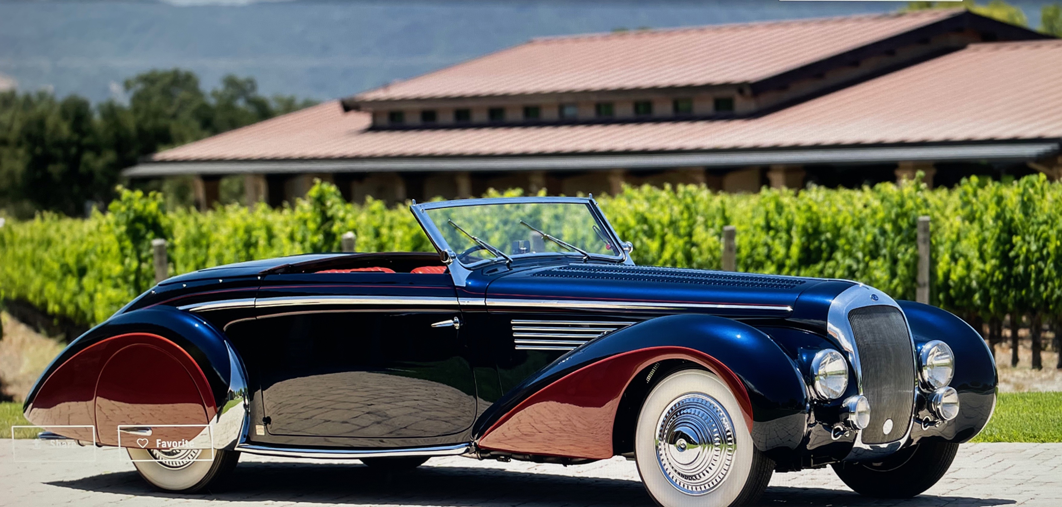 Which leads directly to my first original one: Apres Moi Le Delage. A 1938 D8-120 S Cabriolet Grand Luxe is following me.