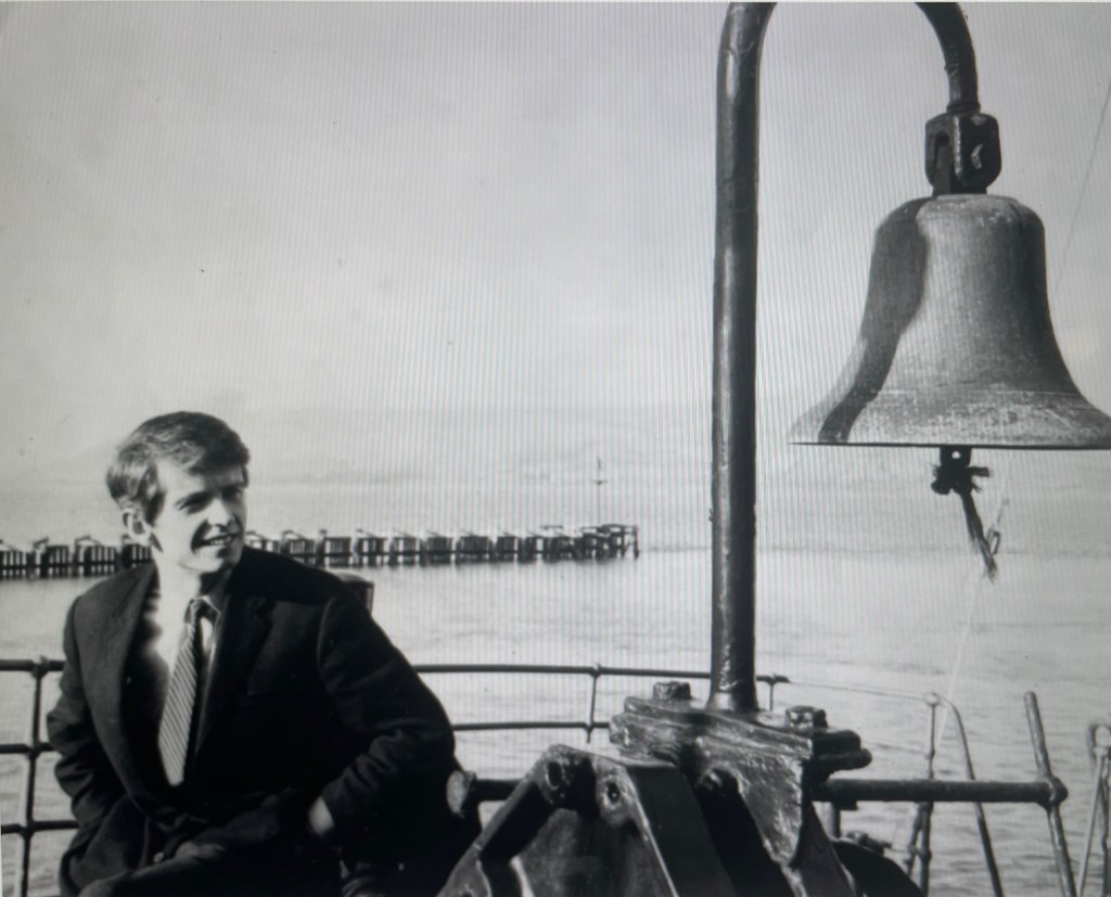 Above, Ronan O’Rahilly, the late founder of Radio Caroline, next to the ship’s signature bell. (The bell can be heard at http://www.radiocaroline.co.uk.) This and following images from Offshore Echos Magazine.