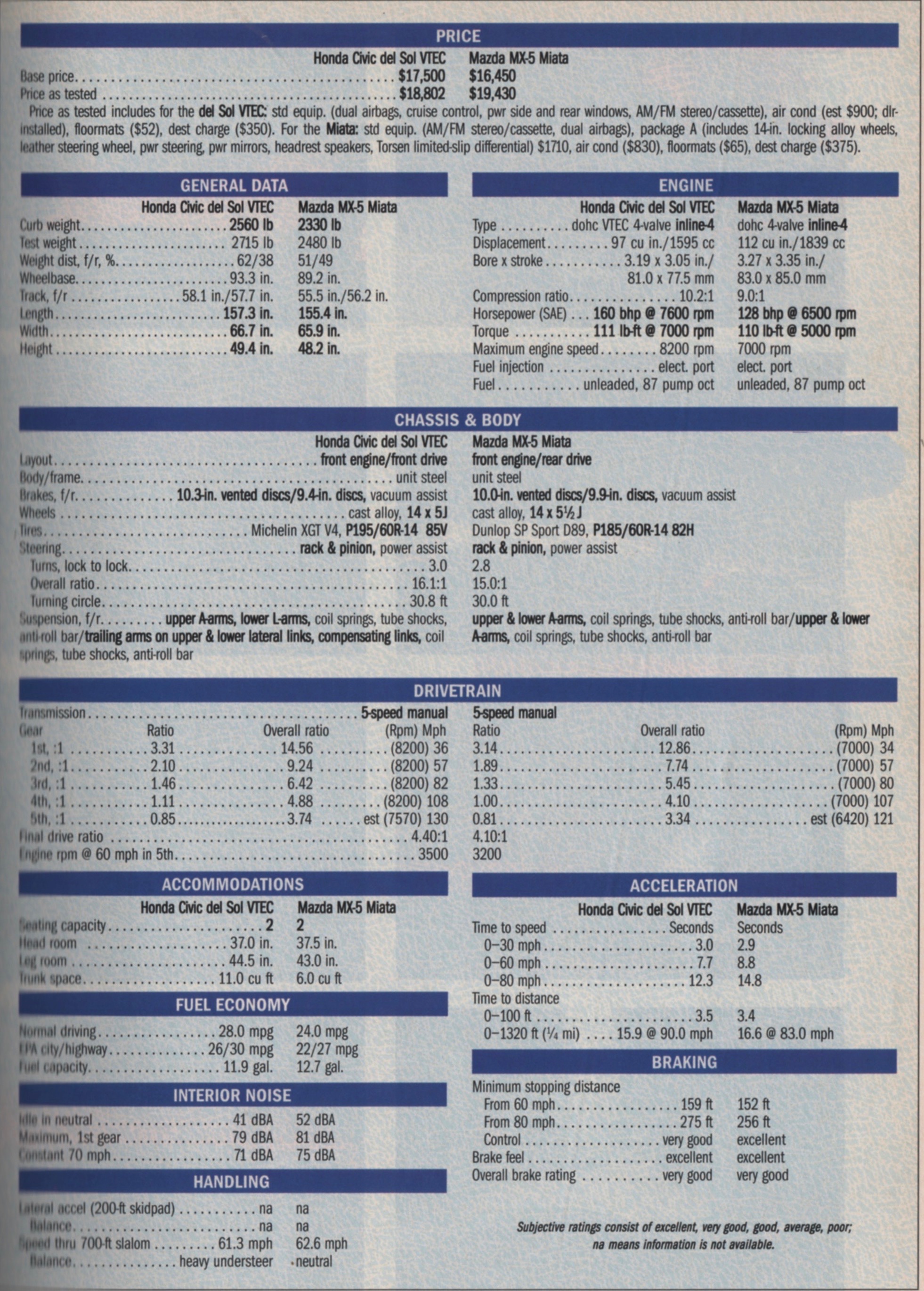 I remember reading that article which 11 years later lead me to purchase my first Miata, a gently used 2001 Starlight Silver 5 speed and one year later, purchased the ultimate NB, a new 2005 Mica Black Mazdaspeed GT MX-5 (it did not say Miata anywhere on that car)which graced my garage for the following 15 years, reluctantly selling it due to back issues. I have driven NA’s, NB’s, NC’s and ND’s and like them all. I never considered the Honda del Sol(a great engine, btw) to be a proper sports car and history has proved me (you?) correct. I see Miatas every day but never see del Sols any more.