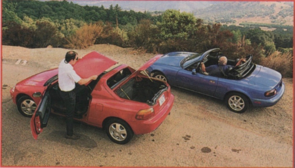 “I’m quite fond of the Miata,” said Kim. “but I happen to feel that the new del Sol VTEC is 1) a credible twisty-road alternative and 2) rich with so many practical features that your hostility toward it utterly escapes me.”