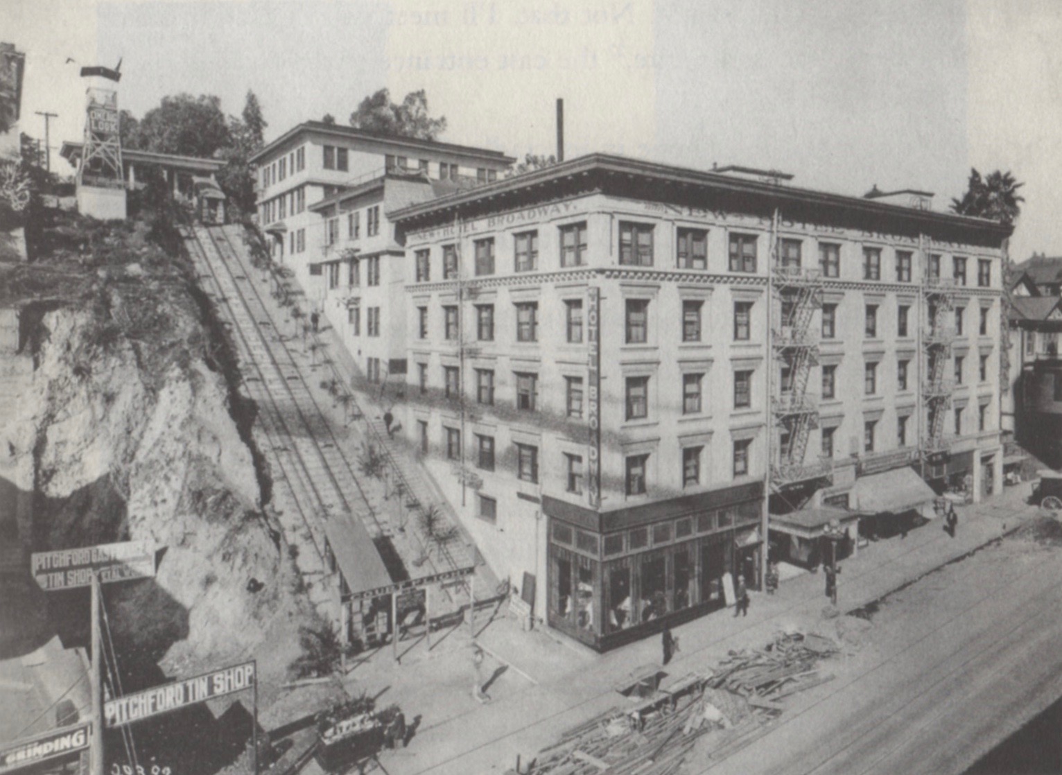 Bunker Hill and Angels Flight in the 1920s. Image from The Annotated Big Sleep.