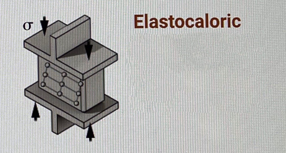 Elastocaloric Technology. “Changing stress (σ),” researchers say, “affects the crystal structure to absorb heat.”  Researchers observe, “Values of 20.9 and 19 W g–1 have been reported as the SCP of elastocaloric polymers and metal, respectively, and 7.9 W g–1 has been achieved with electrocaloric polymers. These numbers are larger than those of state-of-the-art commercial-grade thermoelectric modules.”