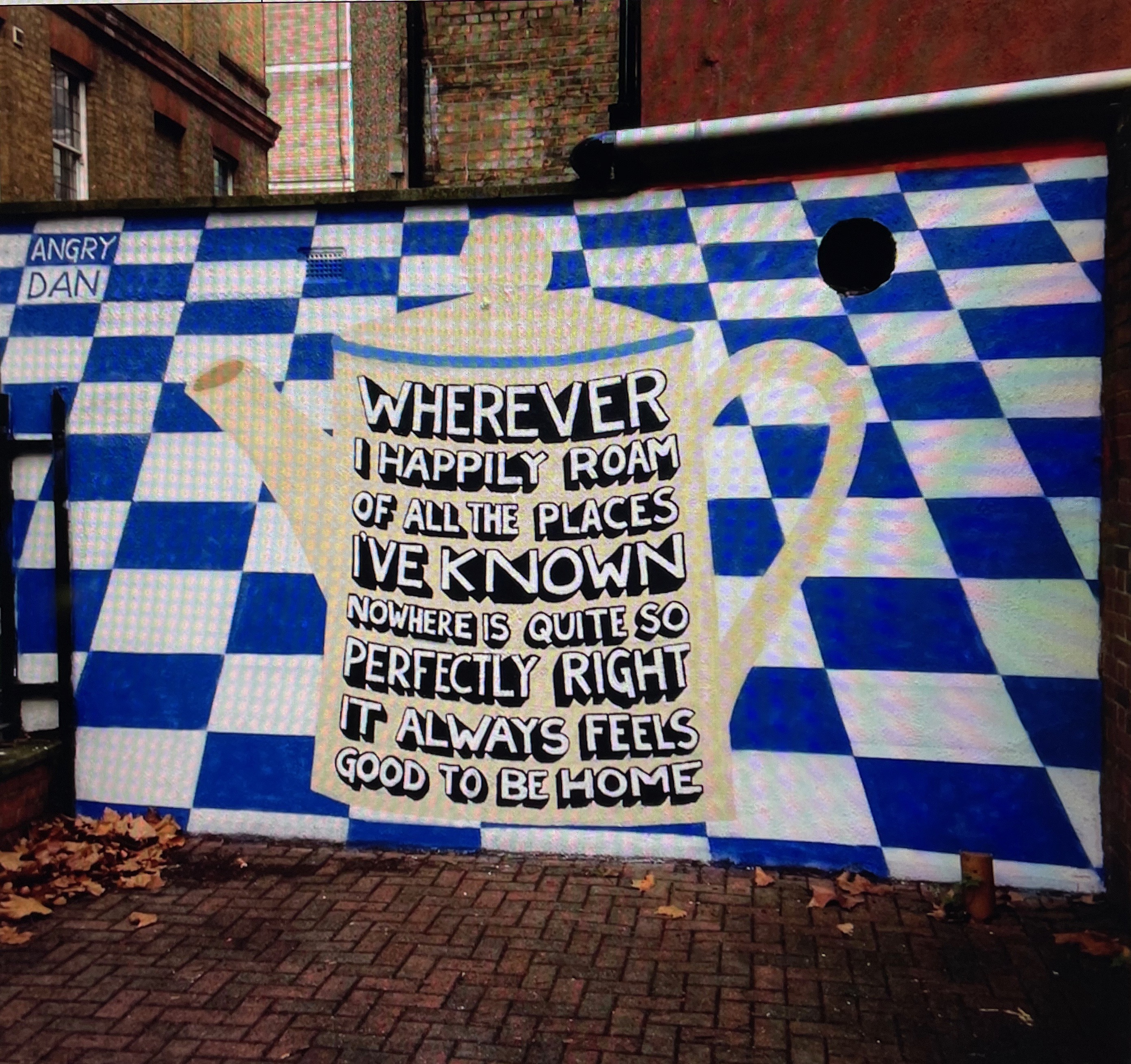 His Limerick Murals. Georgie Mortimer wrote in *Secret London, “Poet and street artist, Angry Dan, has been painting limericks all over London. You’ll find seven of his murals in situ at the moment, with most of them hiding in and around Shoreditch and Camden.”