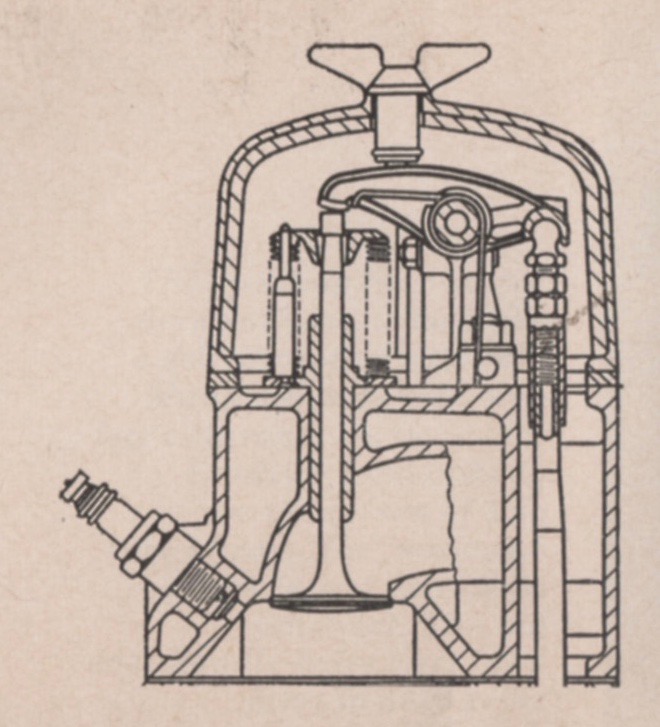 Note the cluster of springs surrounding the valve stem. Also the spark plug is masked, “probably,” R&T said, “to reduce any ‘oiling up’ tendency.”