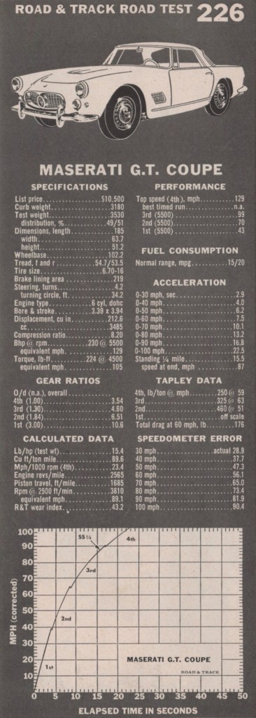 In fact, the magazine noted, “We have long felt that the Maserati (along with its compatriot, Ferrari) is a little too noisy and fussy for genteel use; now we are going to have to eat our words.”