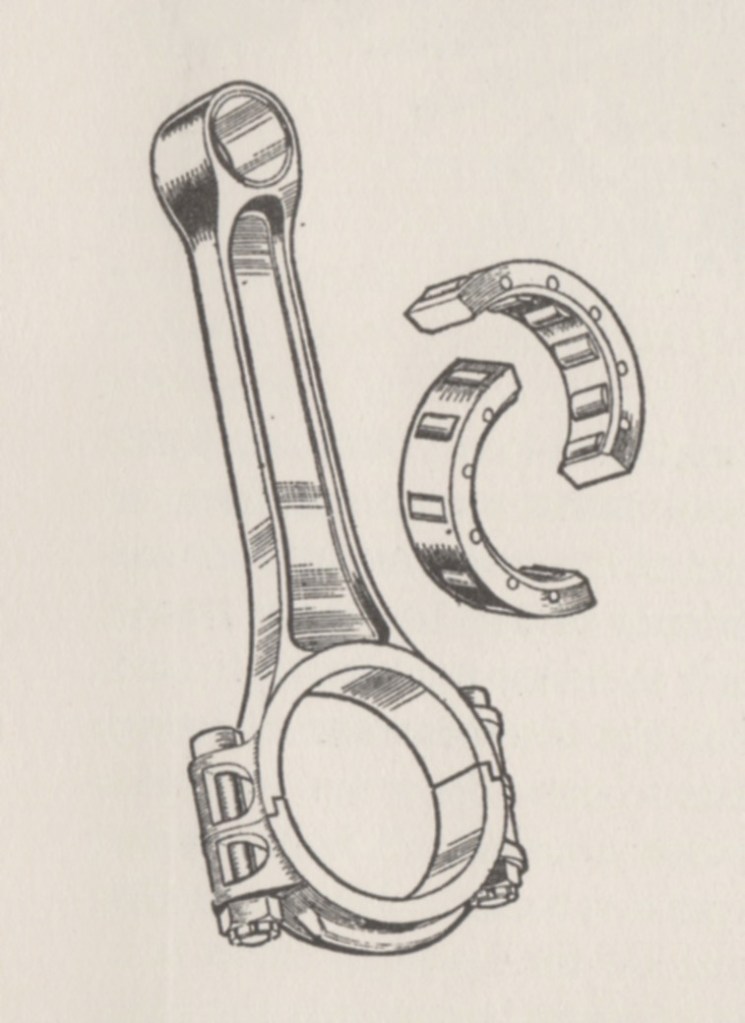 “The engine,” Pom continued, “also had a remarkably high mechanical efficiency, roller bearings being used throughout the whole of the crankshaft assembly and for almost all of the auxiliary drives, the total number of bearings of this kind being no less than 48.”