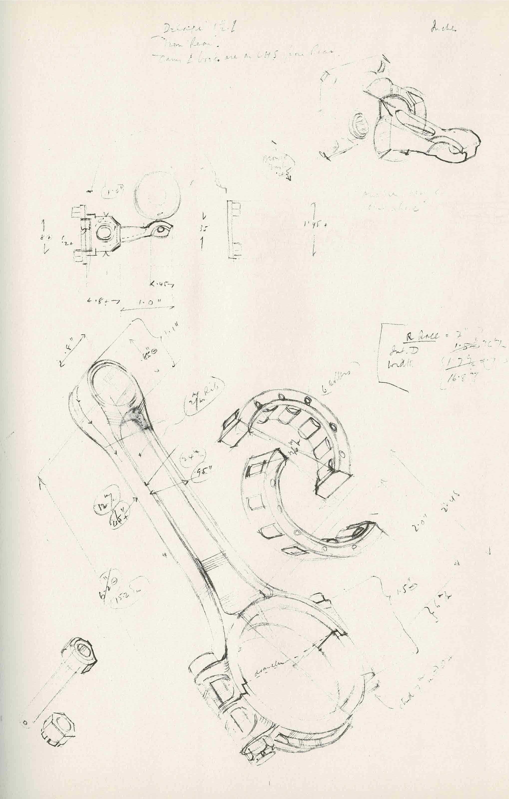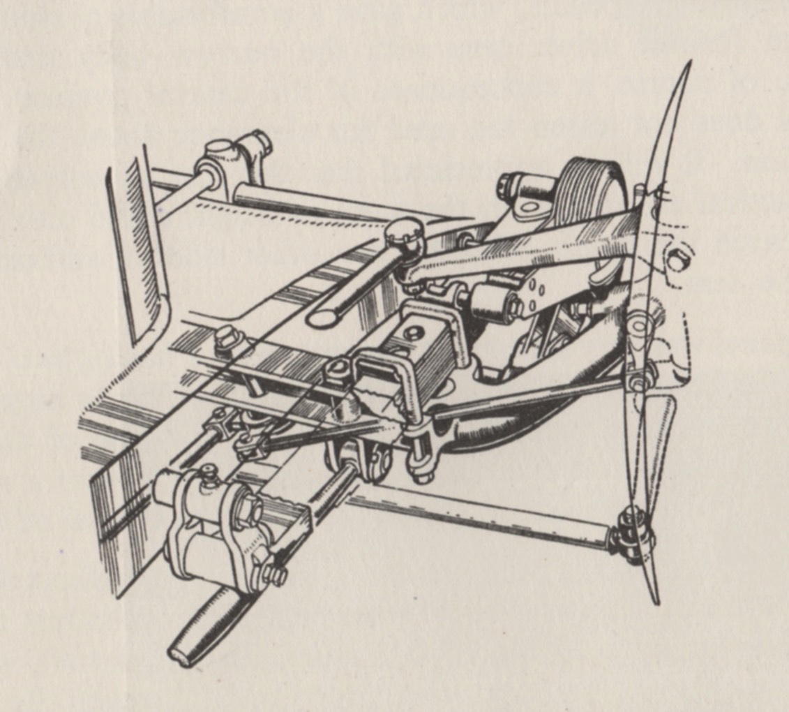 Pom’s caption read, “The arrangement of the front axle radius arm which is in compression during braking can be seen in this detail drawing.”