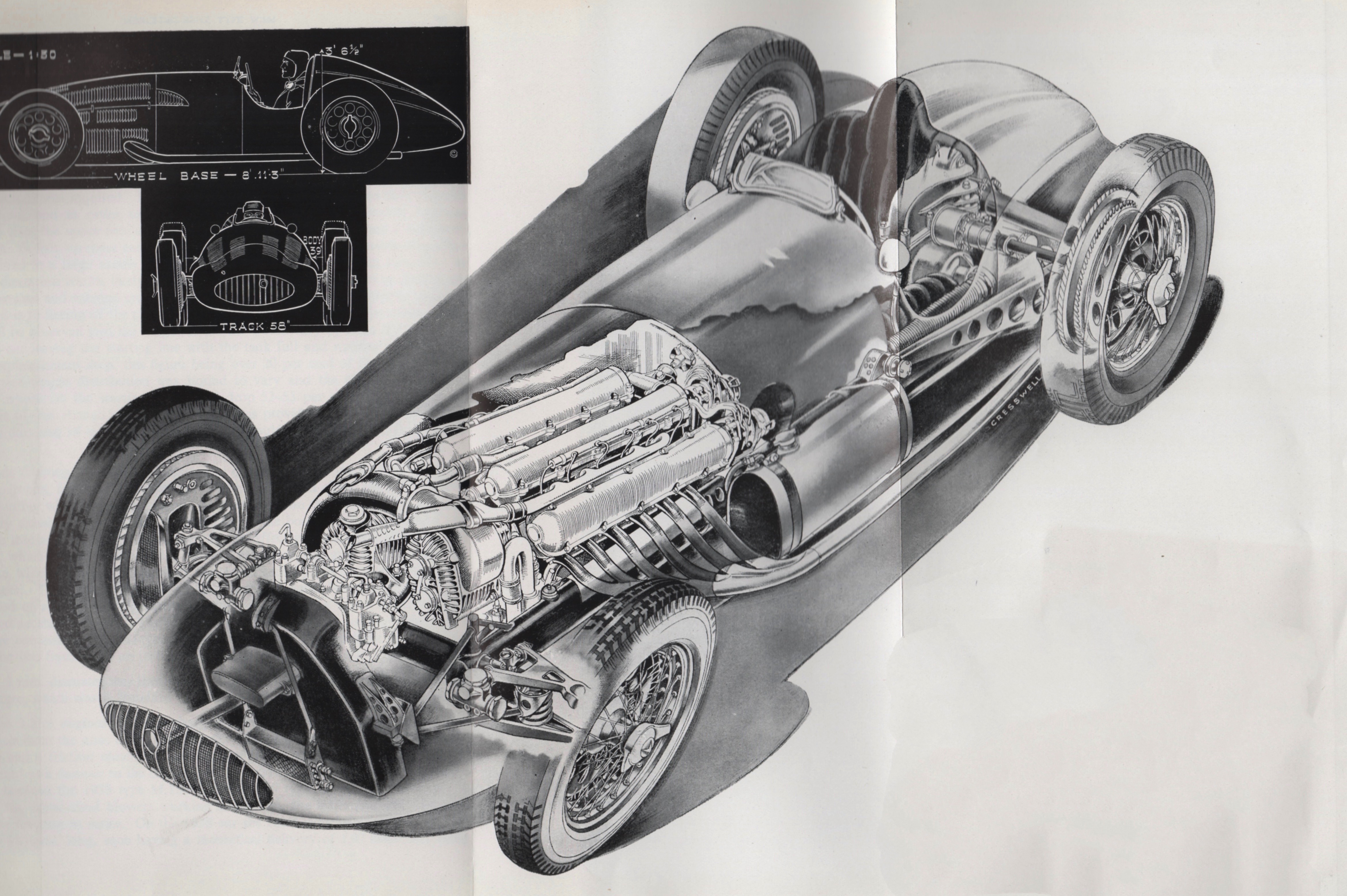 A Bonus Portfiolio of Cresswell Sketches. “These sketches,” Pom described, “show the nature of his original ‘note-taking’ which is done by the artist of the actual vehicle and it is from these that he builds up the magnificent tone and line drawings which are included in this volume in the form of double-page plates.”