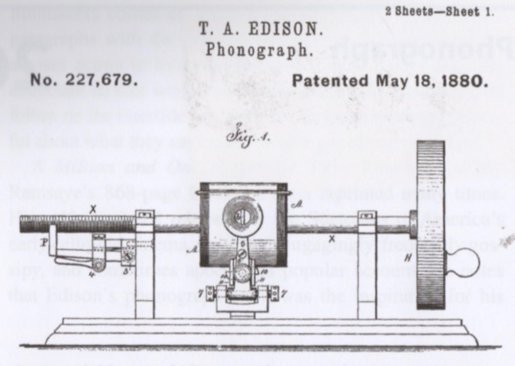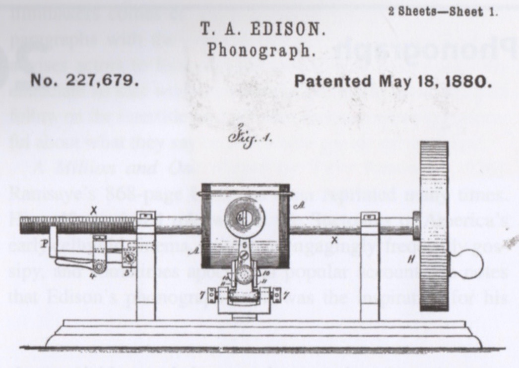The top portion of the USP cover sheet describing Edison’s phonograph. This and the following image from The Cinema in Flux.