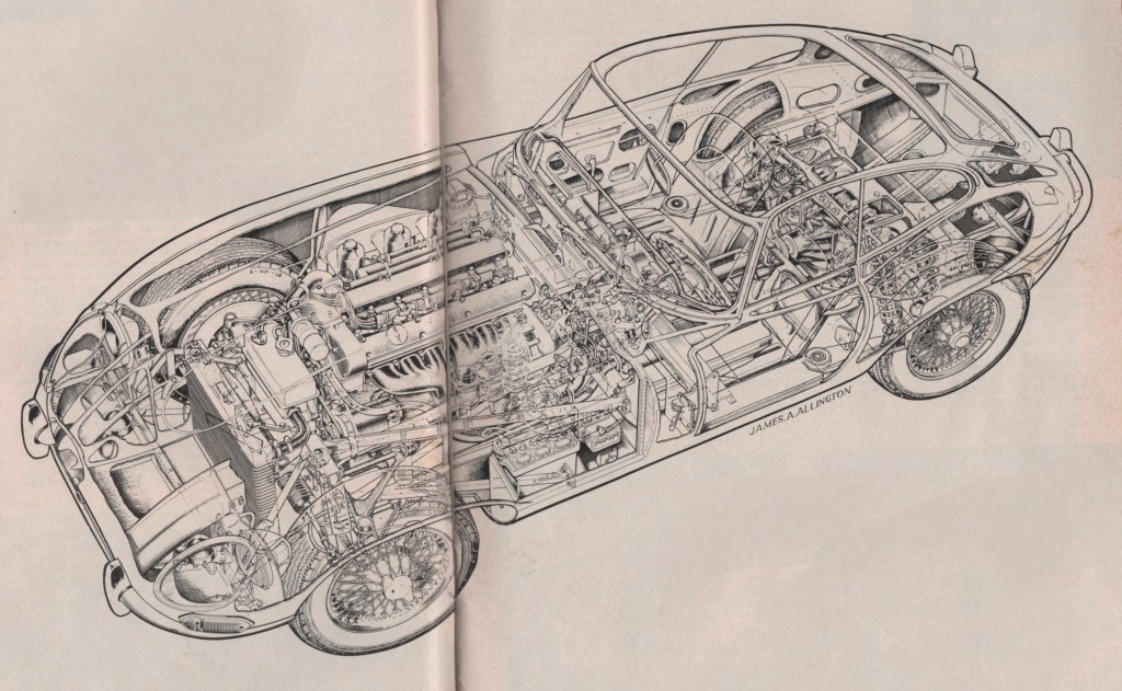 R&T noted that this and the Jag’s weight distribution (49/51 with driver and full tank) give “basically a neutral-steering car, in which only very slight compromises in suspension geometry are necessary to give moderate understeer and high speed stability. The net result has to be experienced to be believed.”