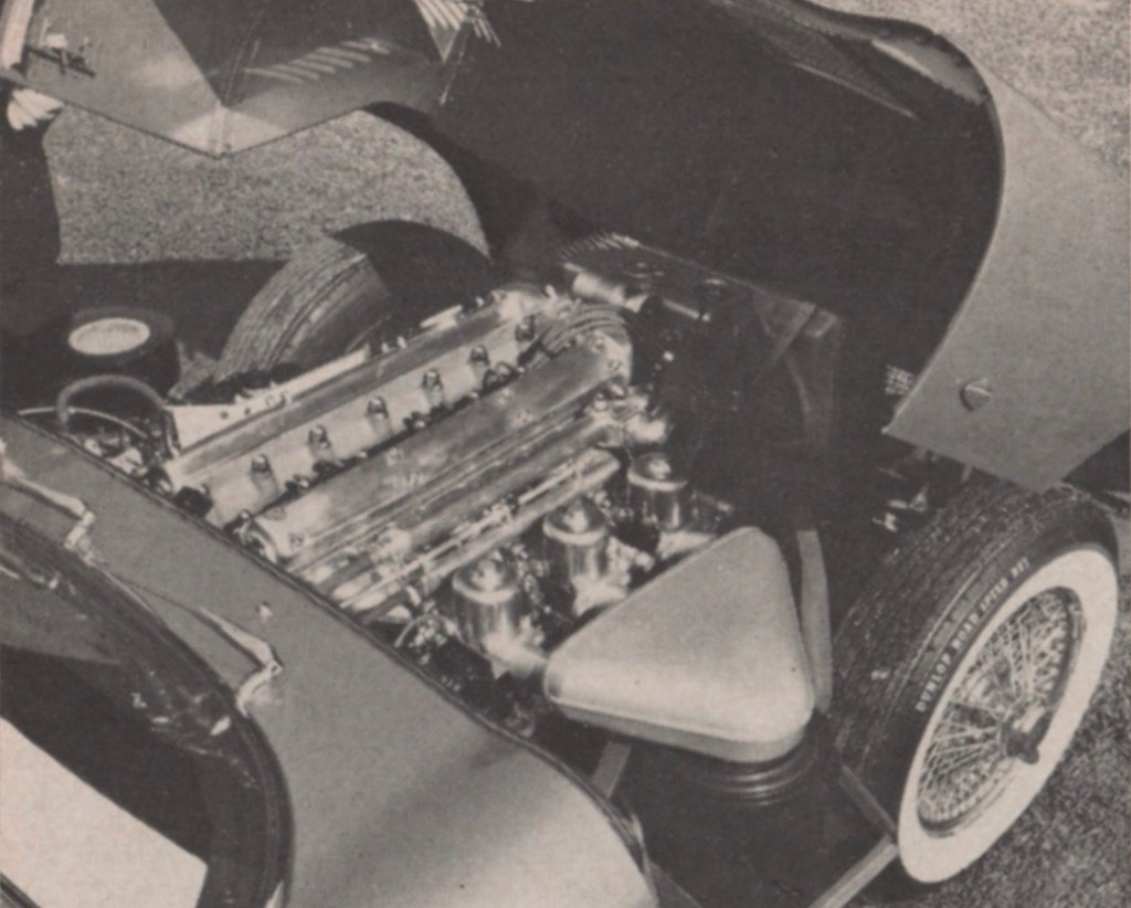 Briefly. “The car itself was fully described in our May issue,” R&T wrote, “but briefly, it has a 96-in. wheelbase monocoque chassis, a 3.8-liter double-overhead-camshaft 6-cyl engine developing 265 bhp, and a curb weight of just over 2700 lb. Two body types are available, a coupe and a roadster—the latter being actually a true convertible, also available with a very neat removable hardtop.”