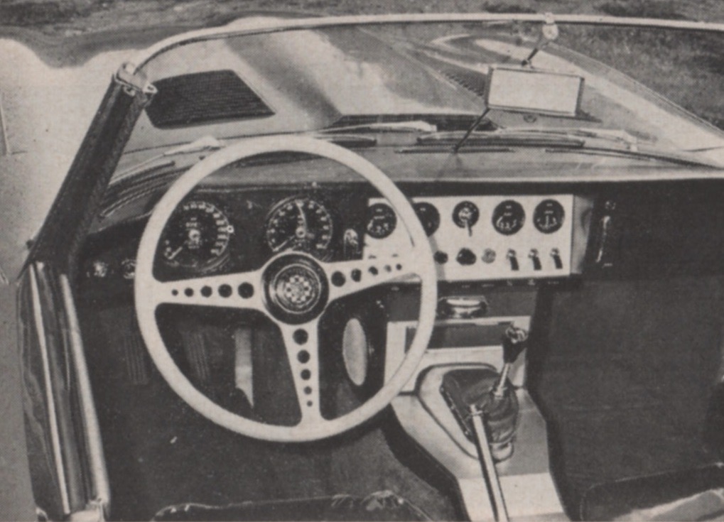 Briefly. “The car itself was fully described in our May issue,” R&T wrote, “but briefly, it has a 96-in. wheelbase monocoque chassis, a 3.8-liter double-overhead-camshaft 6-cyl engine developing 265 bhp, and a curb weight of just over 2700 lb. Two body types are available, a coupe and a roadster—the latter being actually a true convertible, also available with a very neat removable hardtop.”