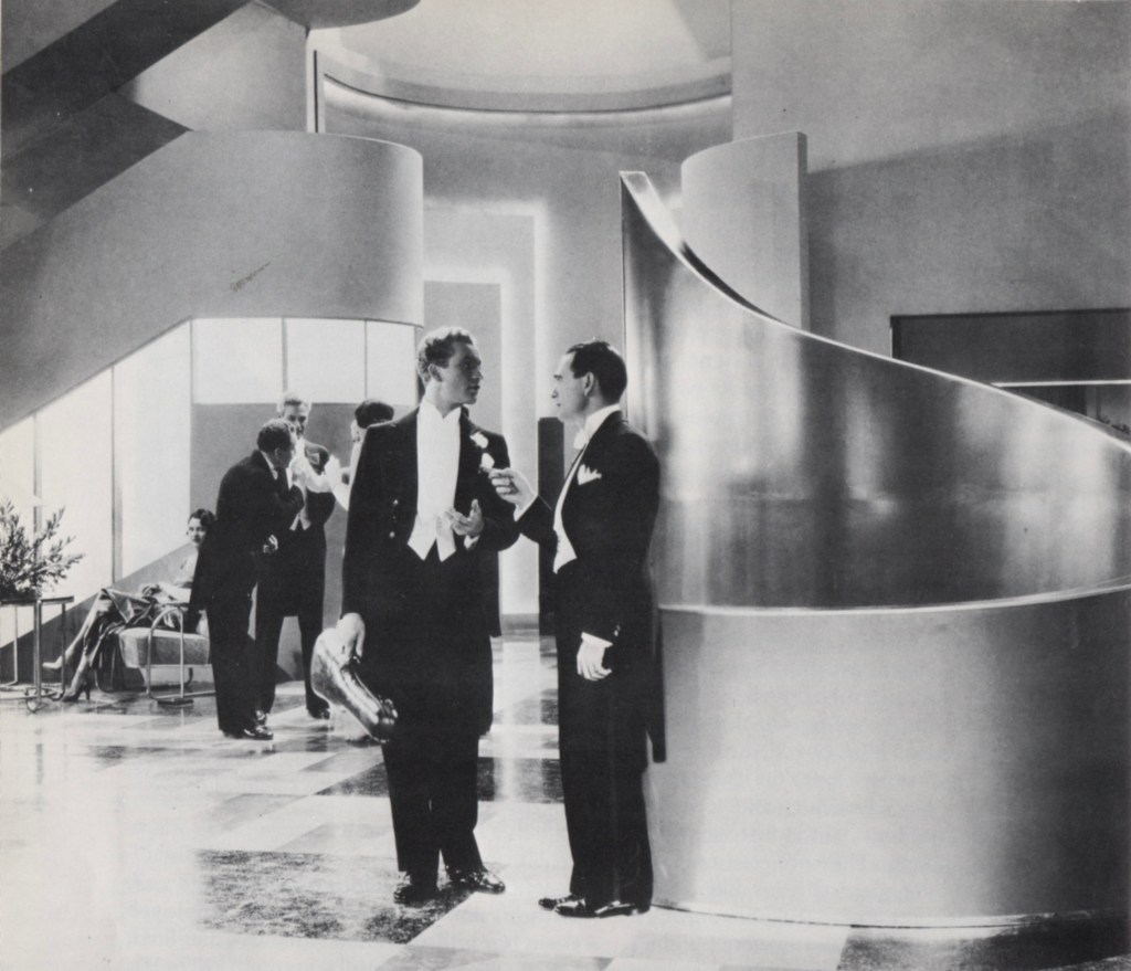 I’ve visited this fine source before in “Deco Flicks.” Today and tomorrow in Parts 1 and 2, let’s see what author Donald Albrecht has to say about Thirties design as viewed in its movies.